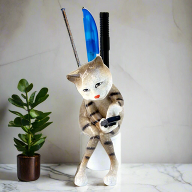 Brown Cat Texting on Toilet Ceramic Ornament Pen Holder These charming little cats are sure to bring a smile to all cat lovers out there, great f...