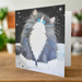 Meet Big Blod, the fluffiest, most cosmic kitty you'll ever encounter! Created by the talented Kim Haskins, this card features a delightfully wide-eyed, intergalactic feline with a glorious mane of black and white fluff. With a gaze full of wonder and paws that look like they're walking on clouds, Big Blod is here to bring some celestial charm to your day.