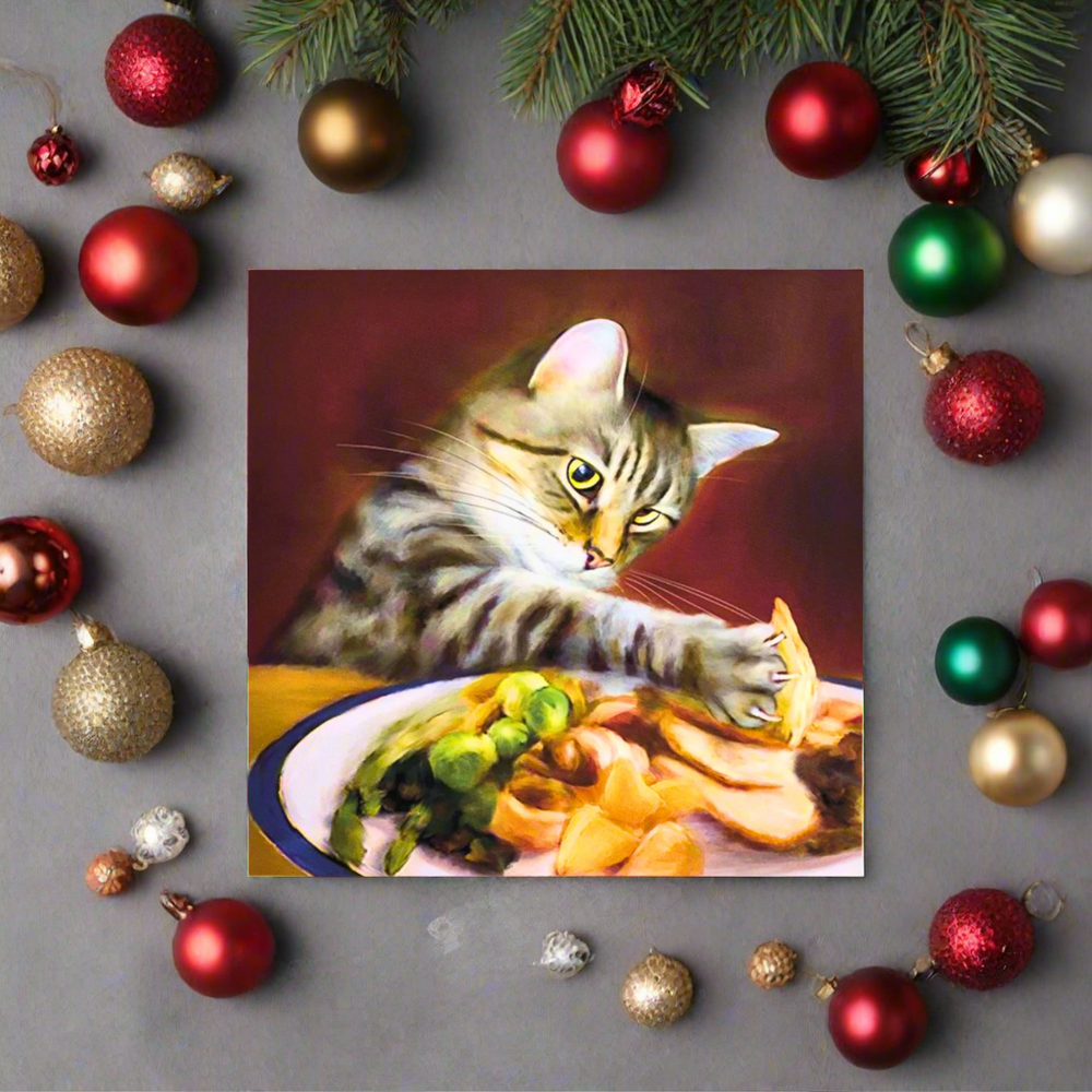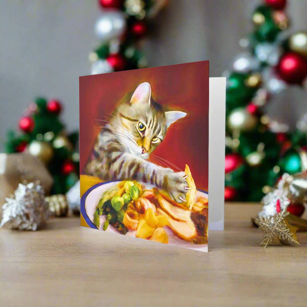 'Takeaway Turkey' Christmas Cat Greeting Card