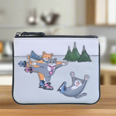 This neat leather coin purse has a zip top opening and cute cat motifs on the front. Inside the purse there's a slip pocket to hold numerous cards ...
