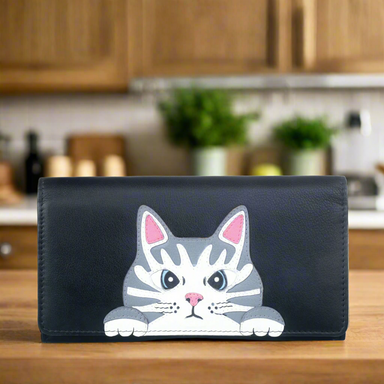 Purrfect for smaller bags, this cute cat tri fold purse is compact and practical. Crafted from genuine soft leather and finished with handstitched...