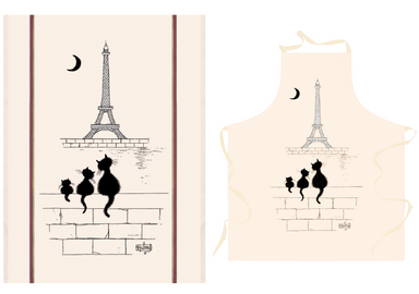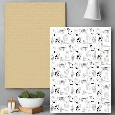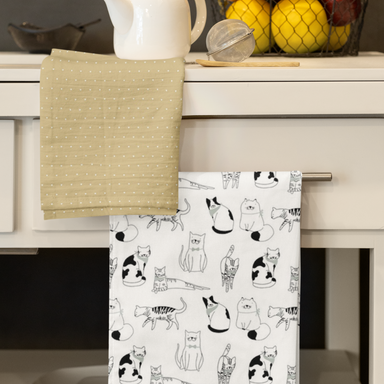 Add some playful charm to your kitchen with this delightful set of two tea towels. Featuring black and white cartoon cats and gold with white heart...