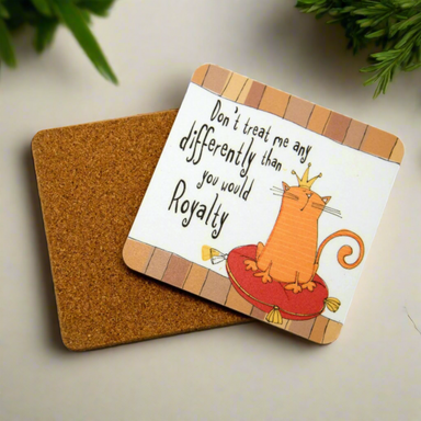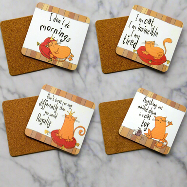 Add some personality to your table with this set of 4 square coasters featuring a hilarious Ginger Cat design. Made from high-quality cork material...
