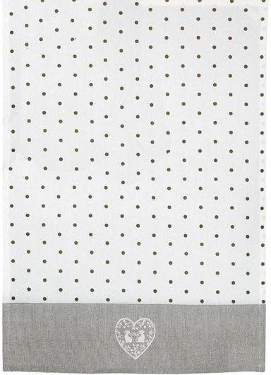 This charming tea towel features a delightful design of two white cats nestled in a heart shape, set against a grey background. Made from 100% cott...