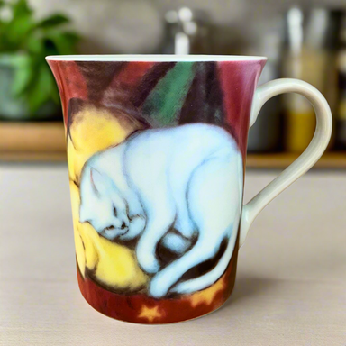 Indulge in a moment of tranquility with this stunning Franz Marc "Le Chat sur un Coussin Jaune" Fine Bone China Mug. Featuring a dreamy depiction o...