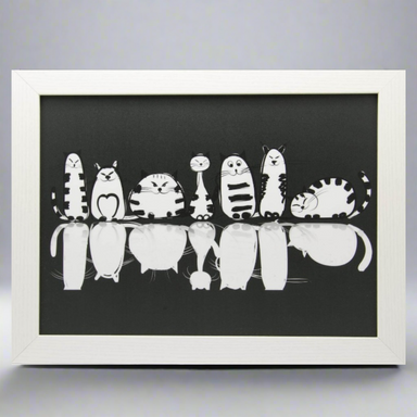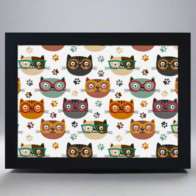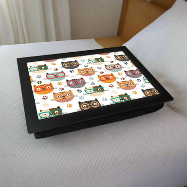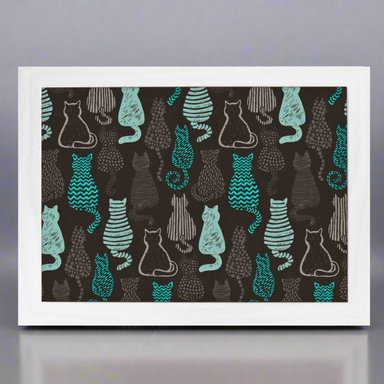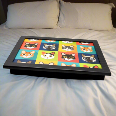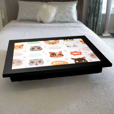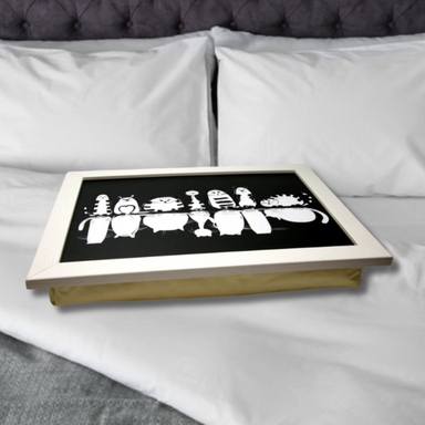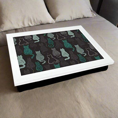 Black Cat Pattern Lap Tray with White Frame - Comfortable & Stylish Laptop Table