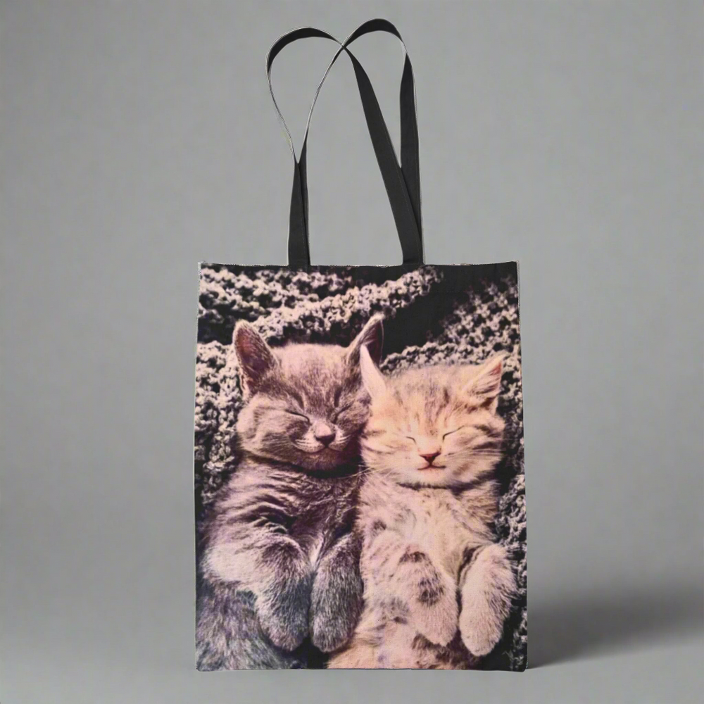 A fabulous reusable canvas shopper with a lovely couple of cute kittens snuggling up design.