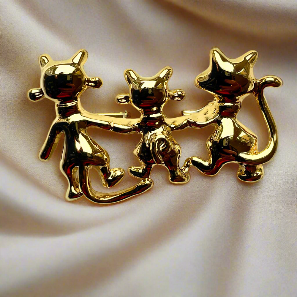 Celebrate the beauty of family and feline love with this exquisite 9K gold-plated cat family brooch. Measuring 4cm x 2.5cm, this charming pin features three adorable cats holding hands, symbolising unity, love, and companionship. The smooth, polished finish adds a luxurious shine, making it a perfect accessory for cat lovers or a thoughtful gift for someone special. Whether worn on a coat, scarf, or bag, this elegant brooch brings a touch of warmth and personality to any outfit. A must-have for cat enthusiasts and jewellery collectors alike!