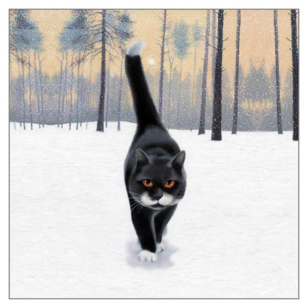 This beautiful Black and White Cat in Snow Christmas Card by Vicky Mount Greetings Card Blank is the purrfect way to spread holiday cheer. The card features a stunning picture of a black and white cat walking in the snow, designed by Vicky Mount for a unique touch.
