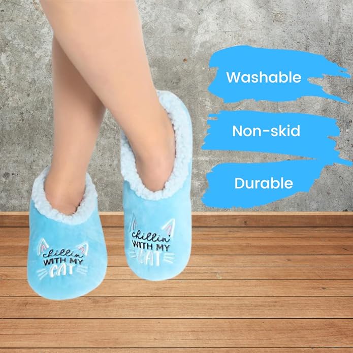 Snuggly little slippers are extra soft & ultra lightweight, making for the purrfect slipper all-year-round. Snuggly little slippers also feature non-skid soles, are durable and even machine washable.