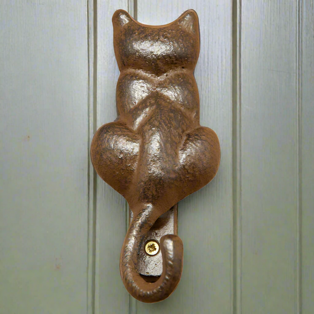 Cute cast Iron Metal Cat Door Knocker, works very well and holds well on heavy doors. Made from Cast iron and with a brown rustic chic finish it is suitable for both indoor and outdoor use.
