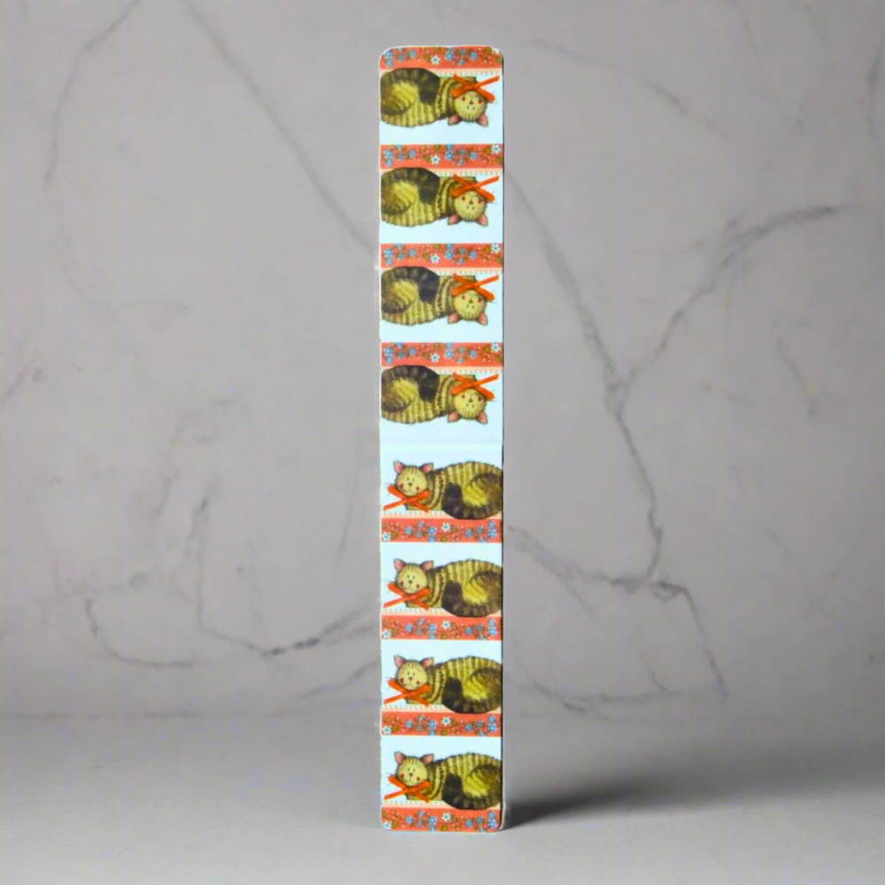 Delight in the whimsical charm of the Alex Clark Cat & Bow Magnetic Bookmark, an essential for any book lover who adores feline friends. Elegantly crafted with a vibrant animal print pattern, this bookmark is not just a functional piece but also a statement accessory for your reading collection. The metal construction ensures durability, while the rectangular design measuring 8 cm in height and 2.5 cm in width offers a comfortable grip.
