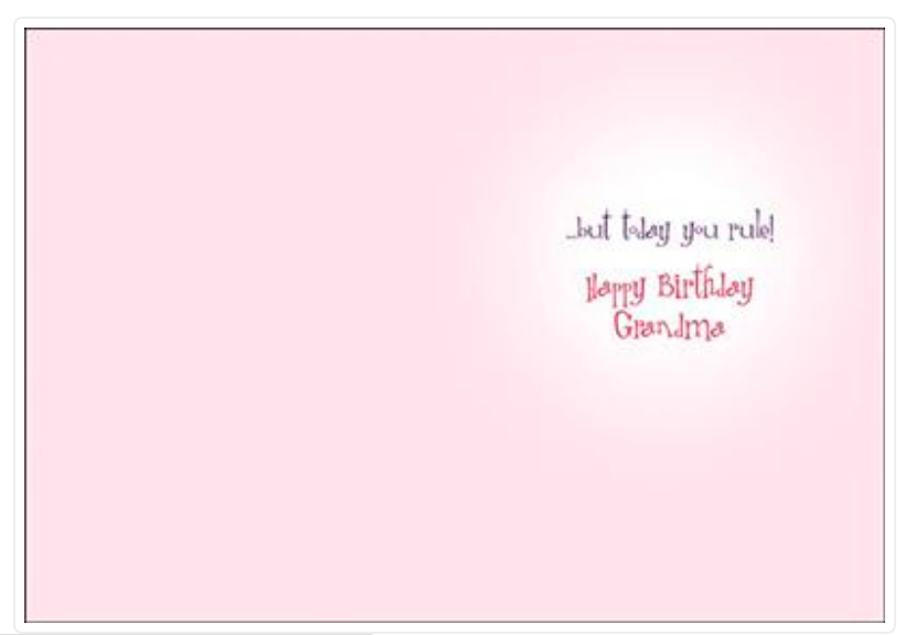 - Message inside reads '.....but today you rule! Happy Birthday Grandma