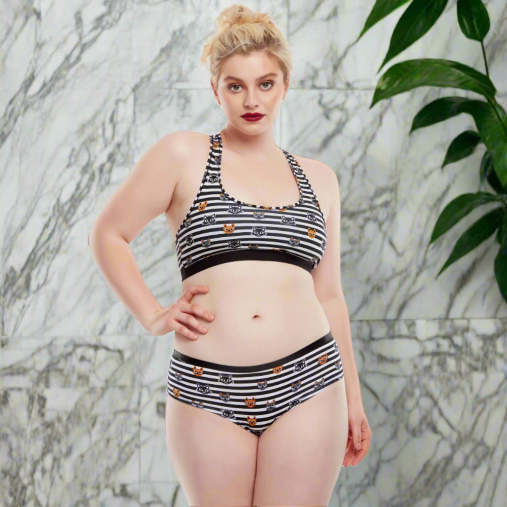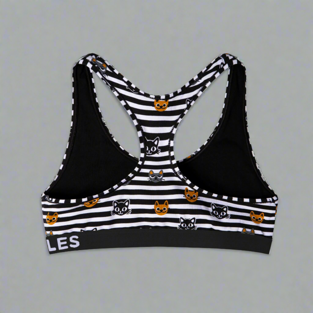 Did you know that cats only meow for humans? They communicate with each other through body language and facial expressions. Our bralette is also made for people, especially those who love comfort and a colourful design.