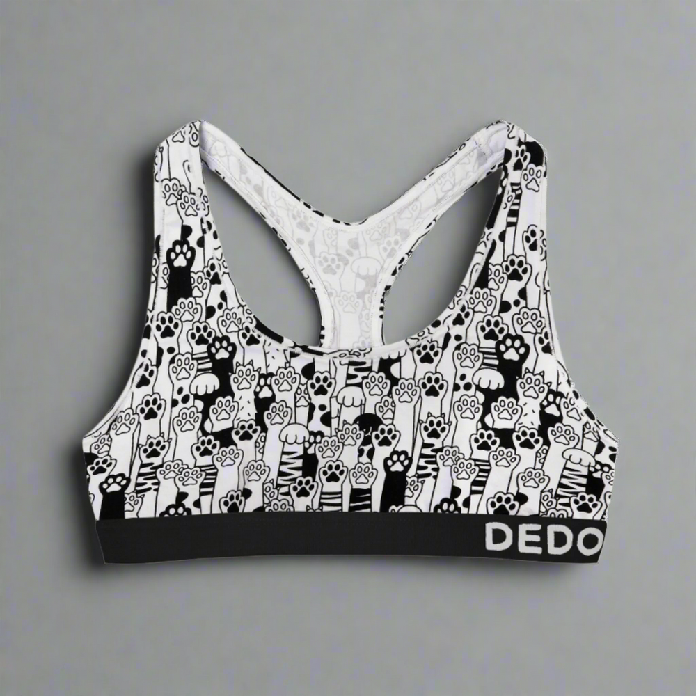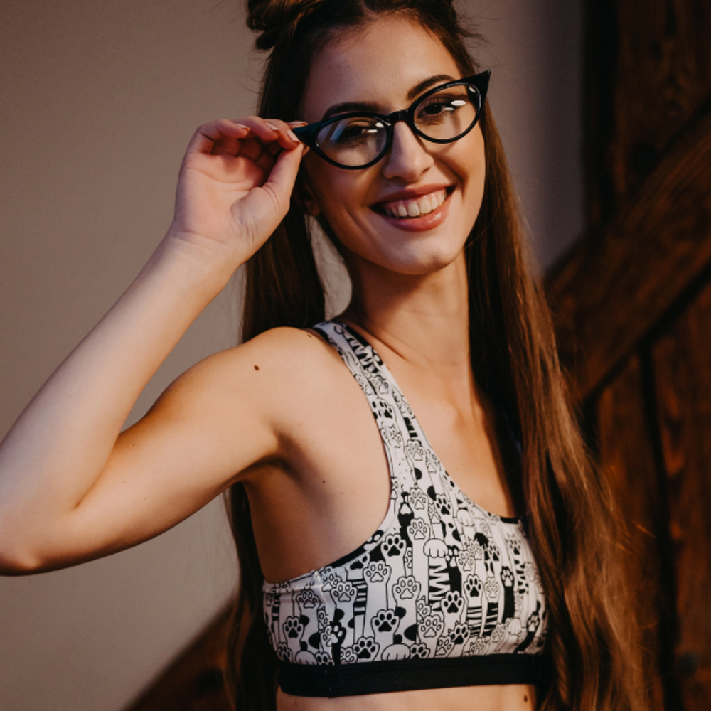 Are you also fascinated by adorable cat paws? Cats are said to be right-handed and left-handed, just like us humans. The next time you watch your cat, notice which paw he uses more often. And don't forget to put on our cheerful bra with cat paws.