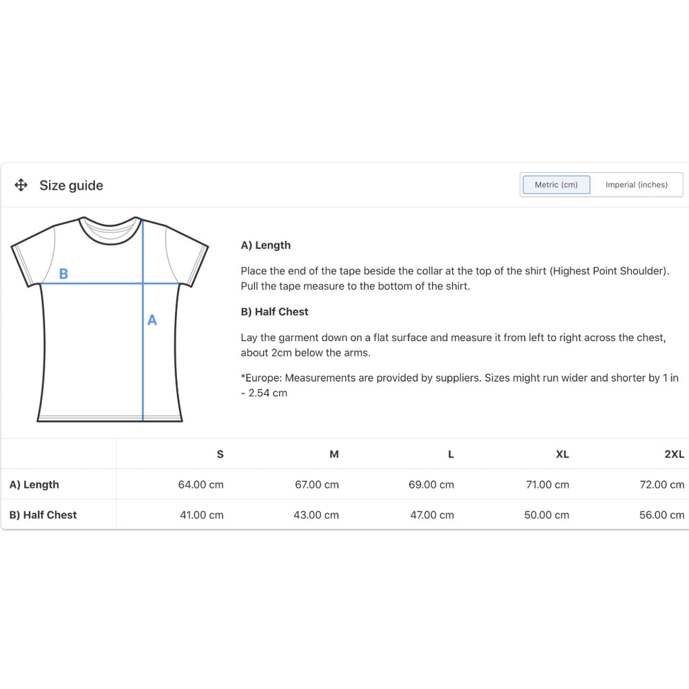 | B) Half Chest (inches) | 18 | 20 | 22 | 24 |