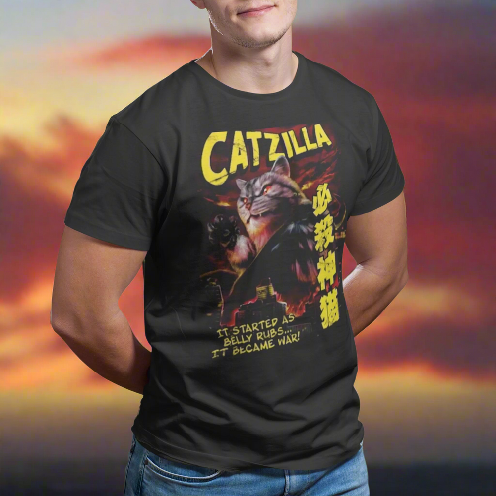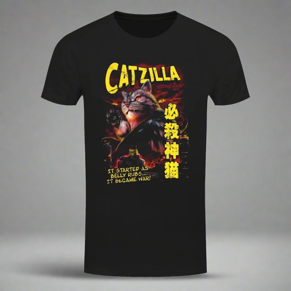 With its unique design and high-quality construction, this T-shirt is sure to turn heads. Whether you're looking to add to your collection of horror-themed clothing or simply want a cool and comfortable T-shirt to wear around town, this Catzilla tee is the perfect choice. So why wait? Order yours today and join the legions of horror fans who can't get enough of this iconic character.
