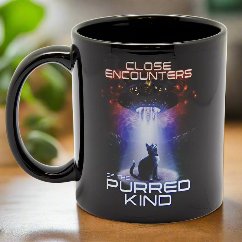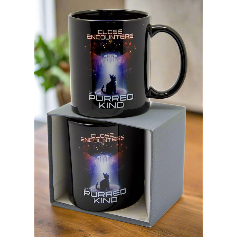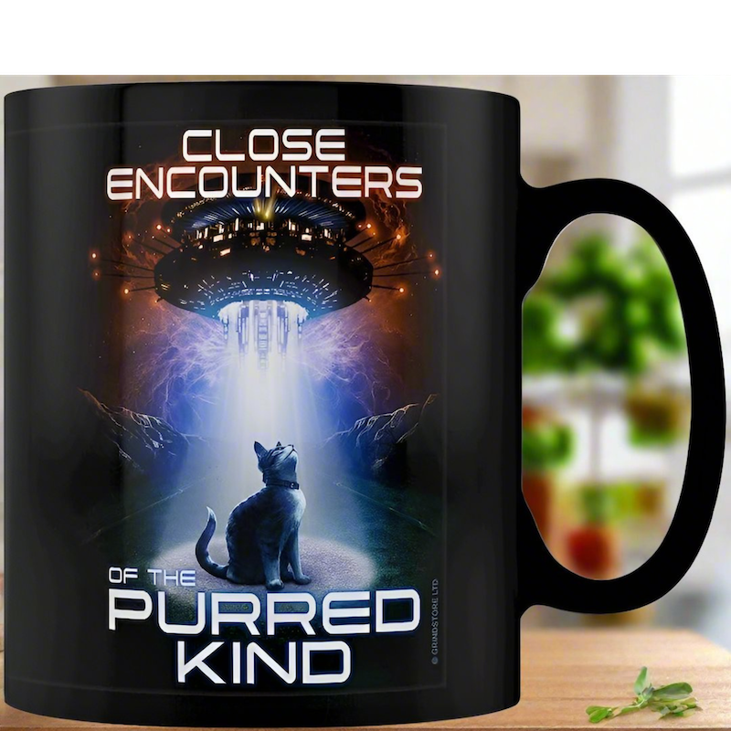 Made from premium quality ceramic from our new range of Cat Film Mugs, we give you our cat spin off of the classic Close Encounters of the Third Kind Black Mug, guaranteed to bring a smile to someone with that sense of humour.