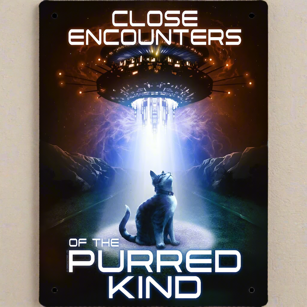 Close Encounters of the Purred Kind Metal Hanging Cat Sign