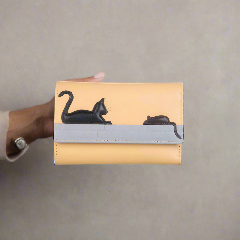 Mala Leather Cat & Mouse Large Tri Fold Purse Yellow — Purrfect Cat Gifts Skip to content
