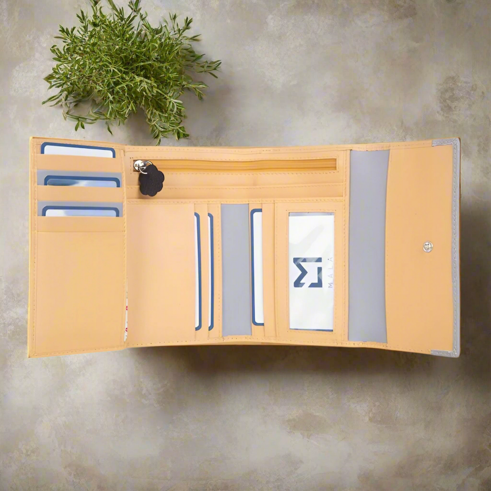 Mala Leather Cat & Mouse Large Tri Fold Purse Yellow