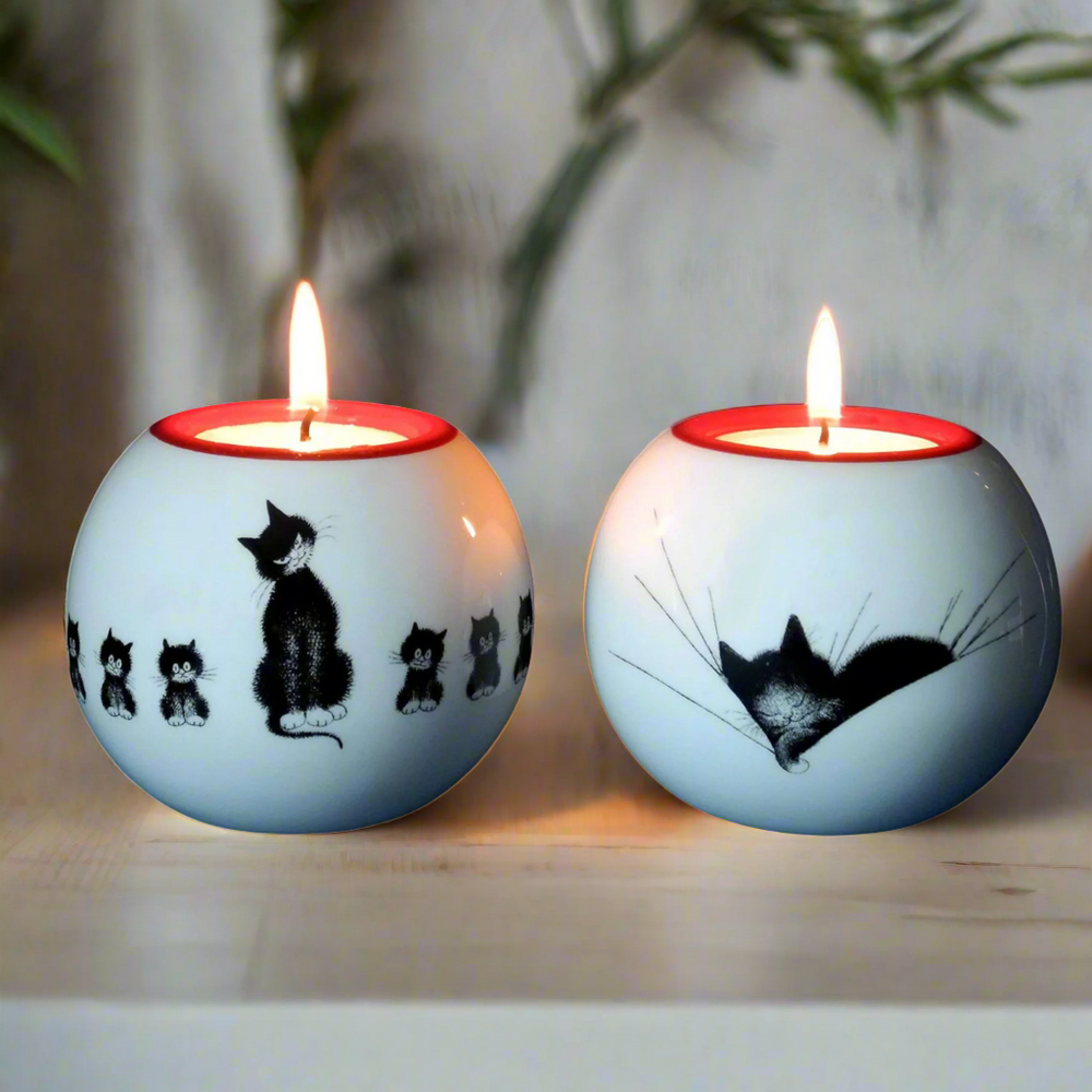 This ceramic tealight holder showcases the charming Dubout Cats collection, featuring either a cat nap or cats in a row design. Measuring 6 cm in height and width, it is purrfect for small spaces and can be placed in any room. The smooth finish and contemporary style make it a great addition to any home decor.
