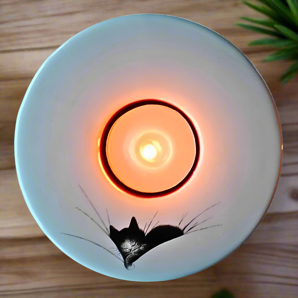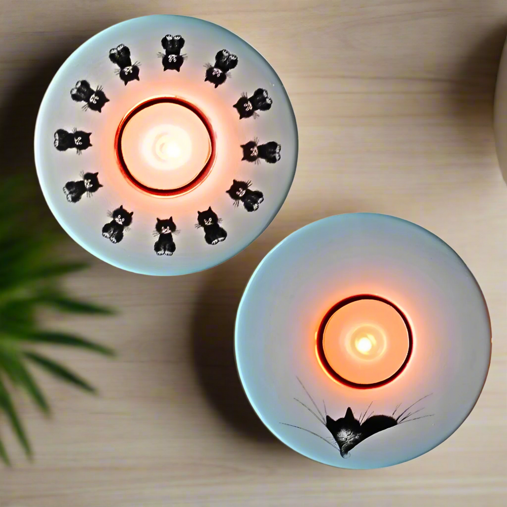 Add some feline charm to any room with this ceramic Dubout Cats Tea Light Holder. Designed by Albert Dubout, it features an adorable cat sleeping or a row of cats in a contemporary style. This small round tea light holder is suitable for any tea light and comes with one included. The smooth white finish gives it a clean look that fits in with any decor.