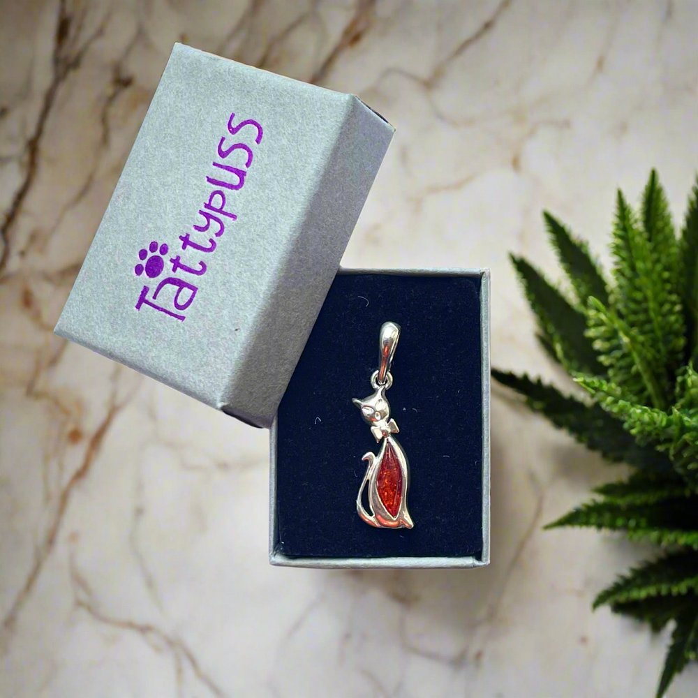 Elegant 925 Sterling Silver and Amber Cat Pendant with Bowtie — Purrfect Cat Gifts Skip to content