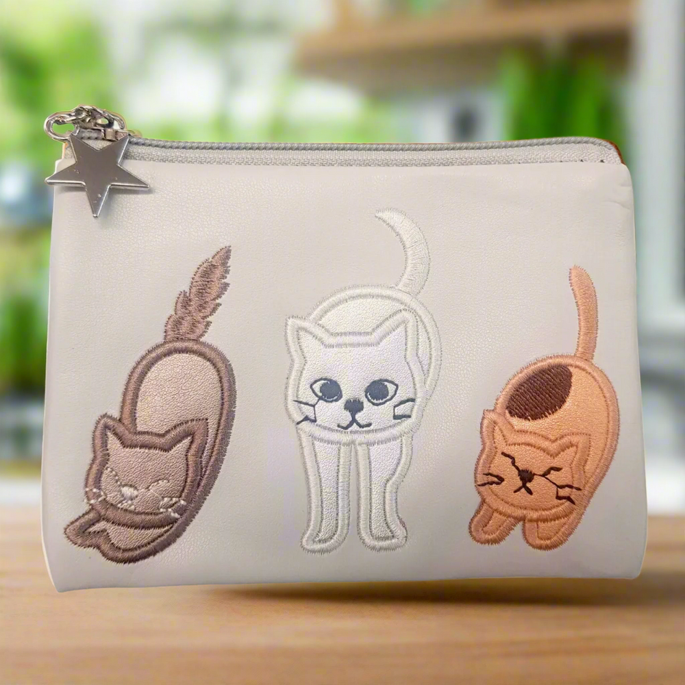 Ideal travel companion and space saver, this cute kitty purse holds cards, coins and notes when folded.