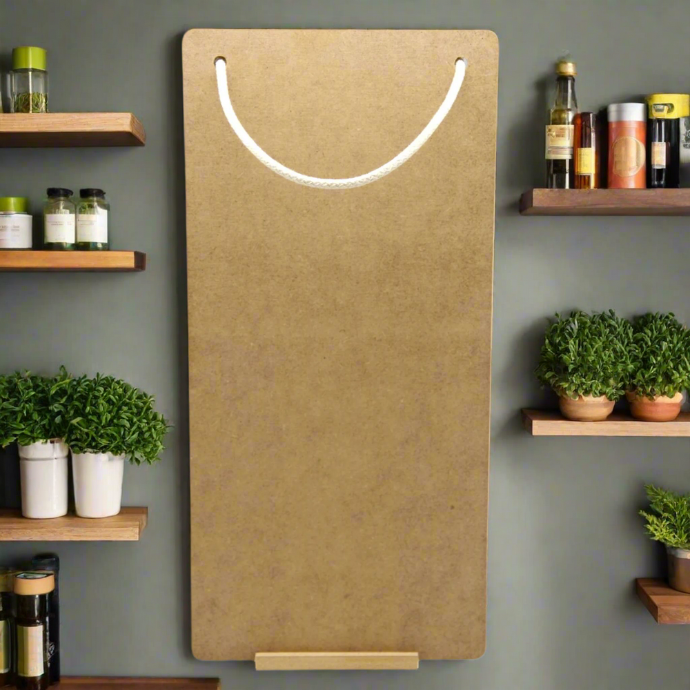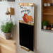 Durable & Stylish: Wood panel effect with a sturdy black chalkboard section.