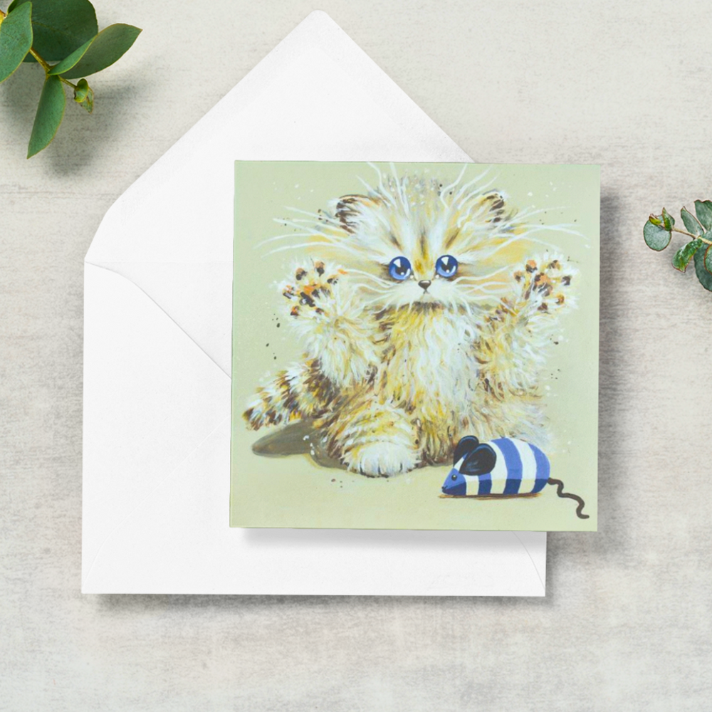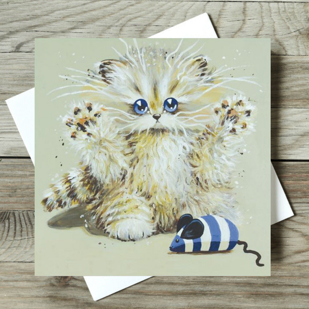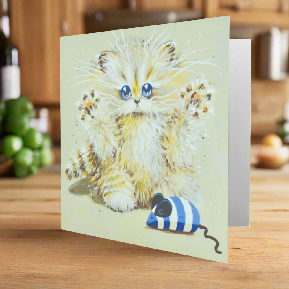 Brace yourself... Fluffzilla has arrived! With paws in the air and those big blue eyes, this tiny terror is ready to wreak adorable havoc on unsuspecting toy mice everywhere.