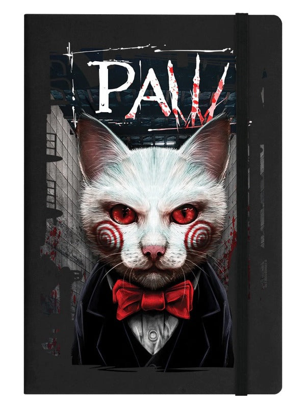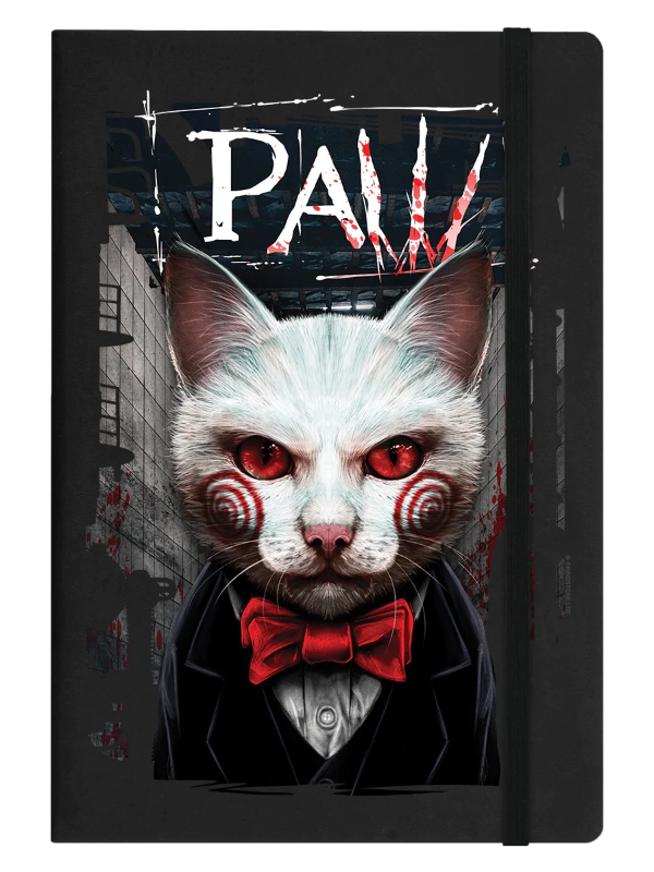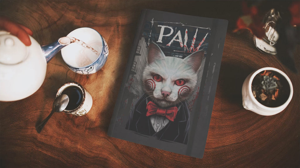 This is a must-have for horror movie fans! The white cat on the hard cover of this A5 notebook is reminiscent of the iconic character from the SAW film franchise. This notebook is purrfect for taking notes, writing stories or just jotting down ideas. It has lined pages for easy writing and comes with a cover style that gives it a unique look. The Grindstore brand assures you of the quality of this notebook. It is an ideal gift for anyone who is into horror movies or just loves cats.