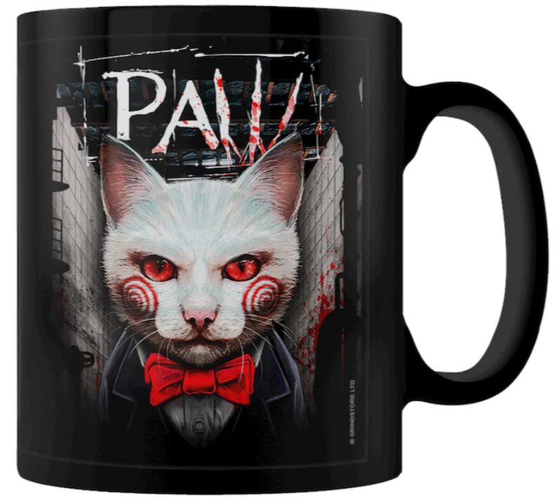Made from premium quality ceramic from our new range of Cat Film Mugs, we give you our cat spin off of the classic SAW, guaranteed to bring a smile to someone with that sense of humour.