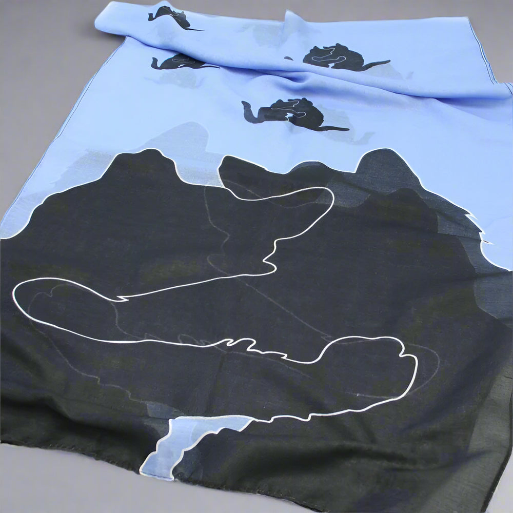Looking for a purrfect gift for the cat lover in your life? Look no further than our fabulous Hugging Cat Print Scarf, designed by local Berkshire artist Kat Jackson exclusively for The Scarf Giraffe. Made from a soft blend and lightweight material, this scarf measures 180cm by 50cm and is 100% polyester. Your cat-loving friend will thank you!