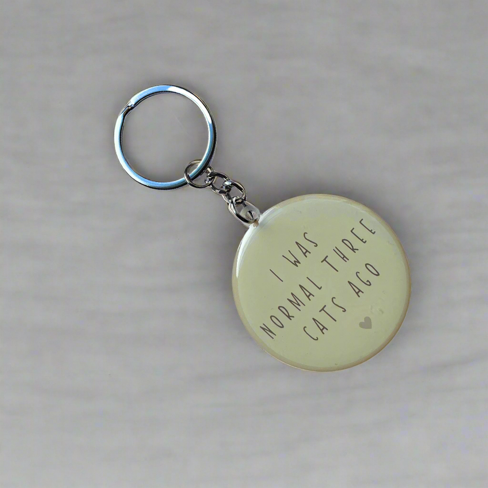 I Was Normal Three Cats Ago Enamel & Glass Bag Charm Keyring