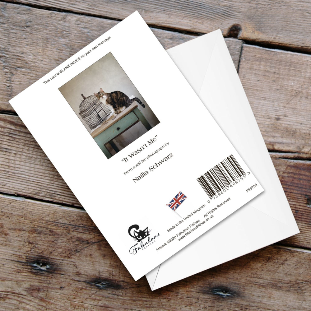"It Wasn't Me" perfectly captures that classic feline attitude—mischief mixed with complete denial. Whether you’re sending birthday wishes, an apology (in true cat fashion), or just a good laugh, this card is a purrfect choice!