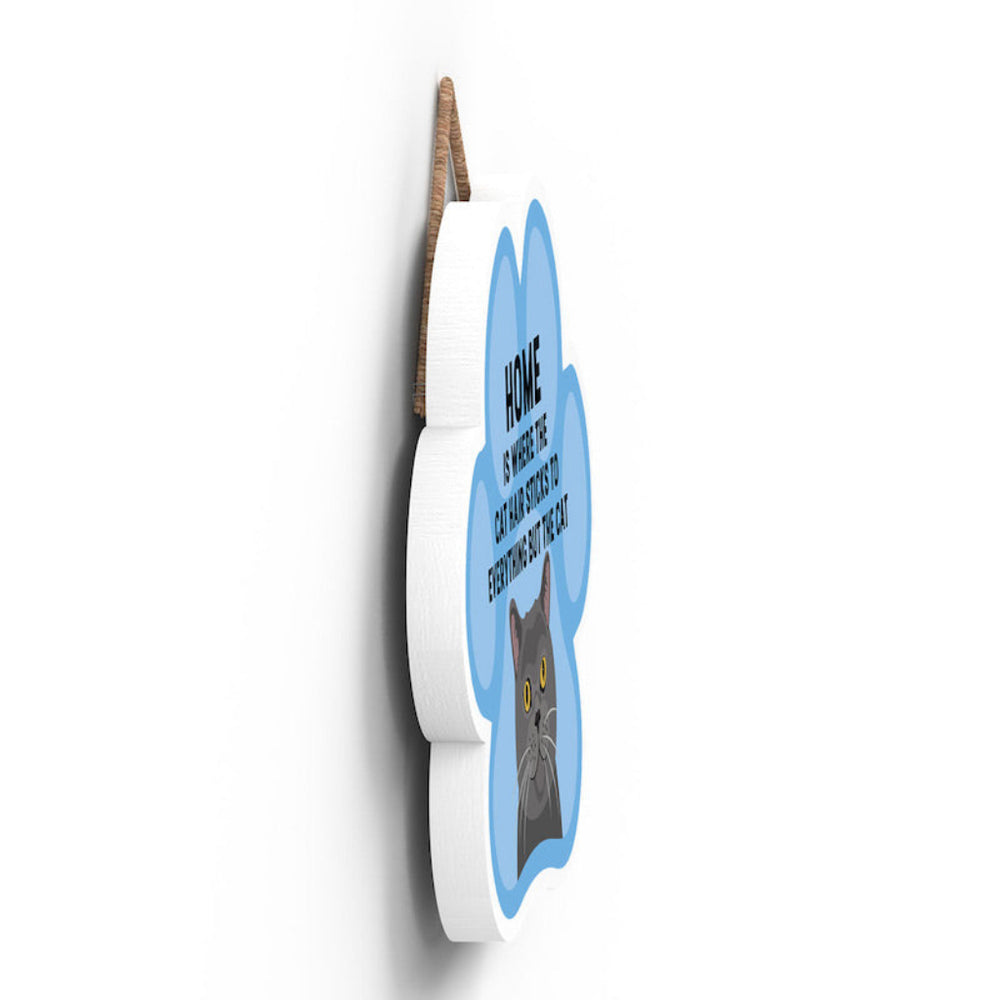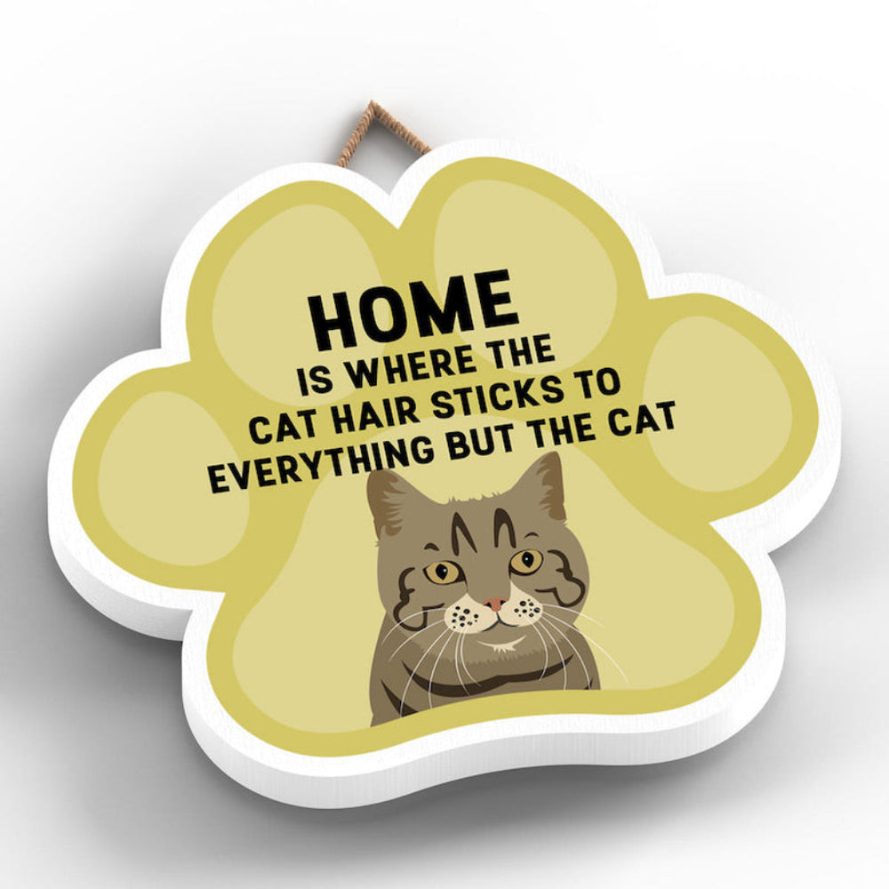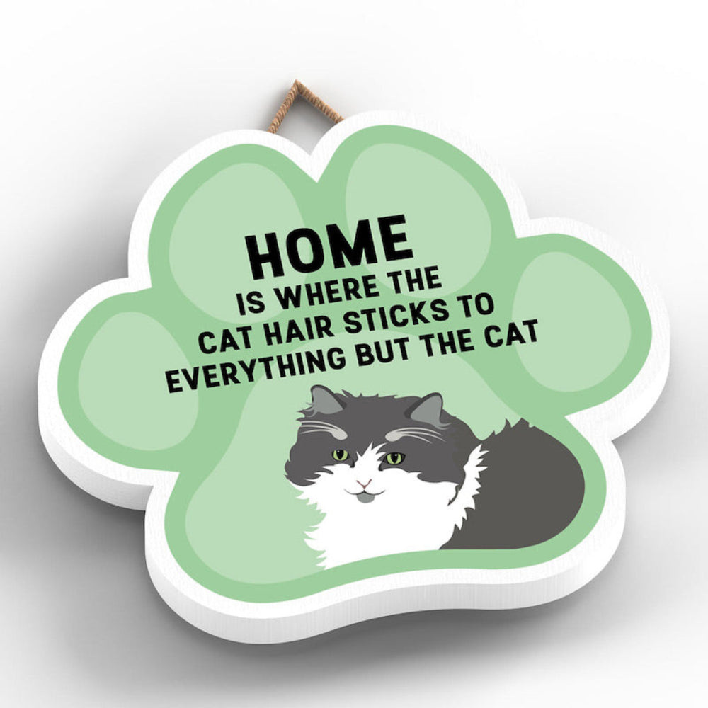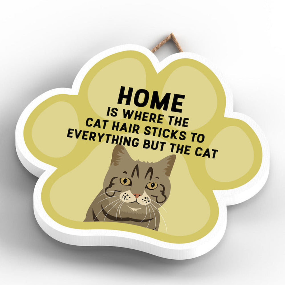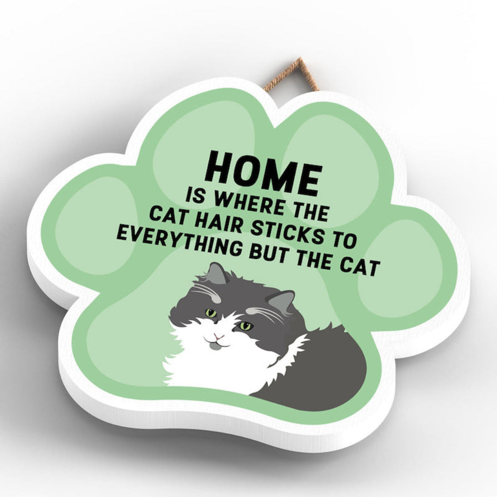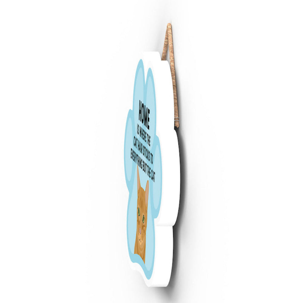 This wooden hanging sign by Vivid Squid is the purrfect decorative item for any cat lover's home. Featuring a colourful Cat Paw Shape, it has the words "HOME is Where the Cat Hair Sticks to Everything But The Cat" printed on it in a fun and humorous way. Measuring 9.2cm in height and 9.9cm in width, this sign is handmade by Katie Pearson and can be hung in any room of your house.