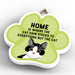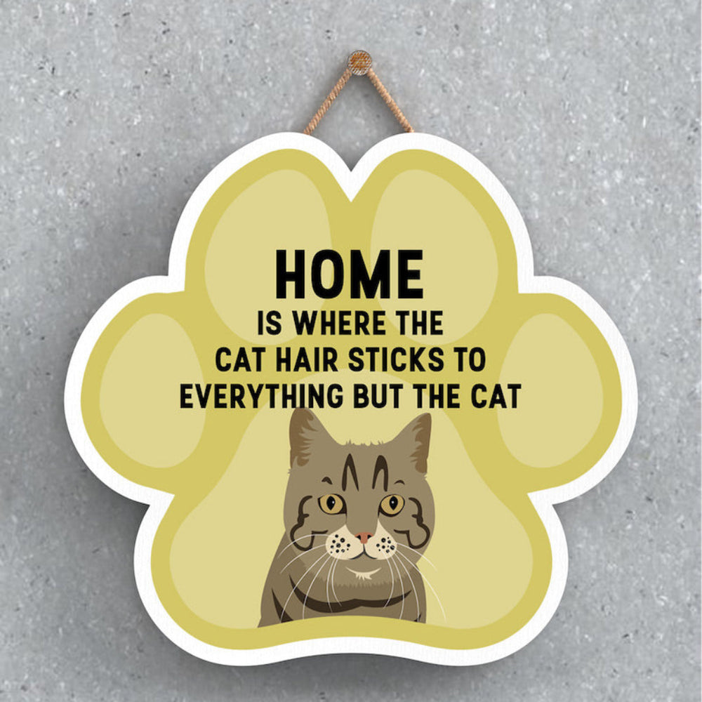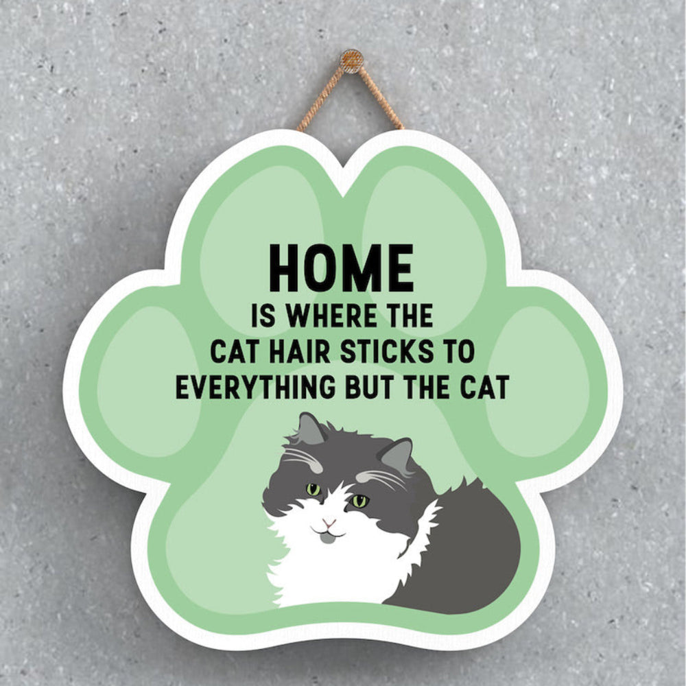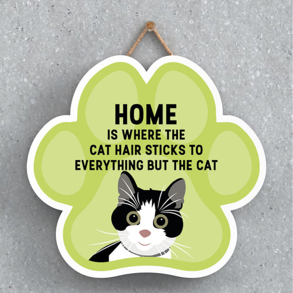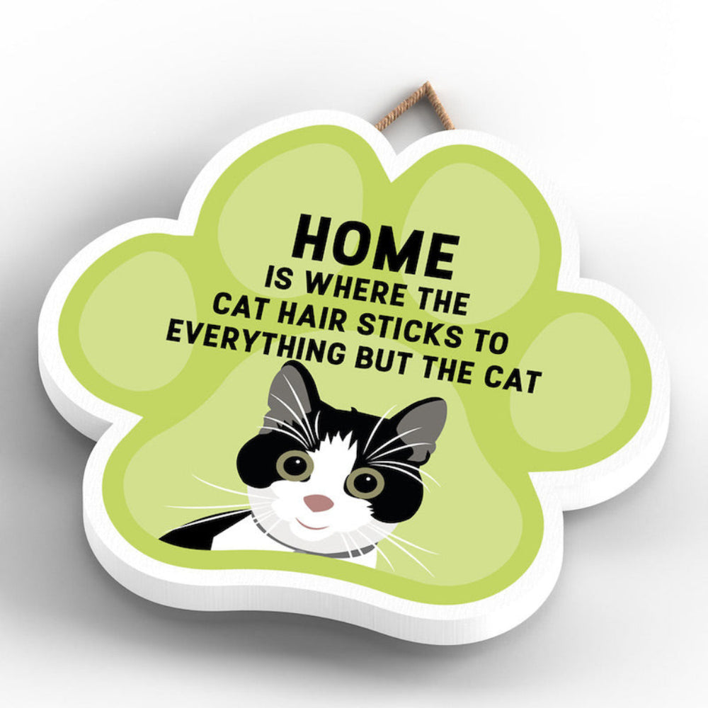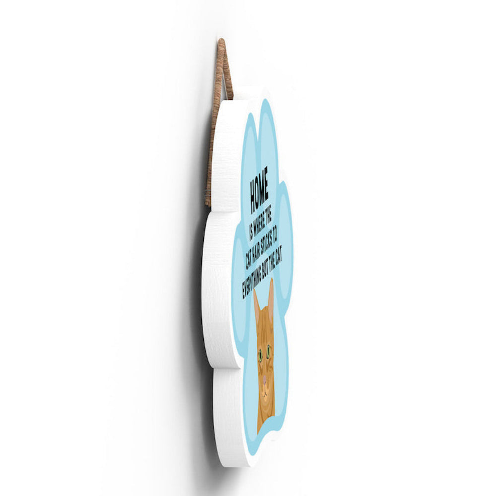 This wooden hanging sign by Vivid Squid is the purrfect decorative item for any cat lover's home. Featuring a colourful Cat Paw Shape, it has the words "HOME is Where the Cat Hair Sticks to Everything But The Cat" printed on it in a fun and humorous way. Measuring 9.2cm in height and 9.9cm in width, this sign is handmade by Katie Pearson and can be hung in any room of your house.
