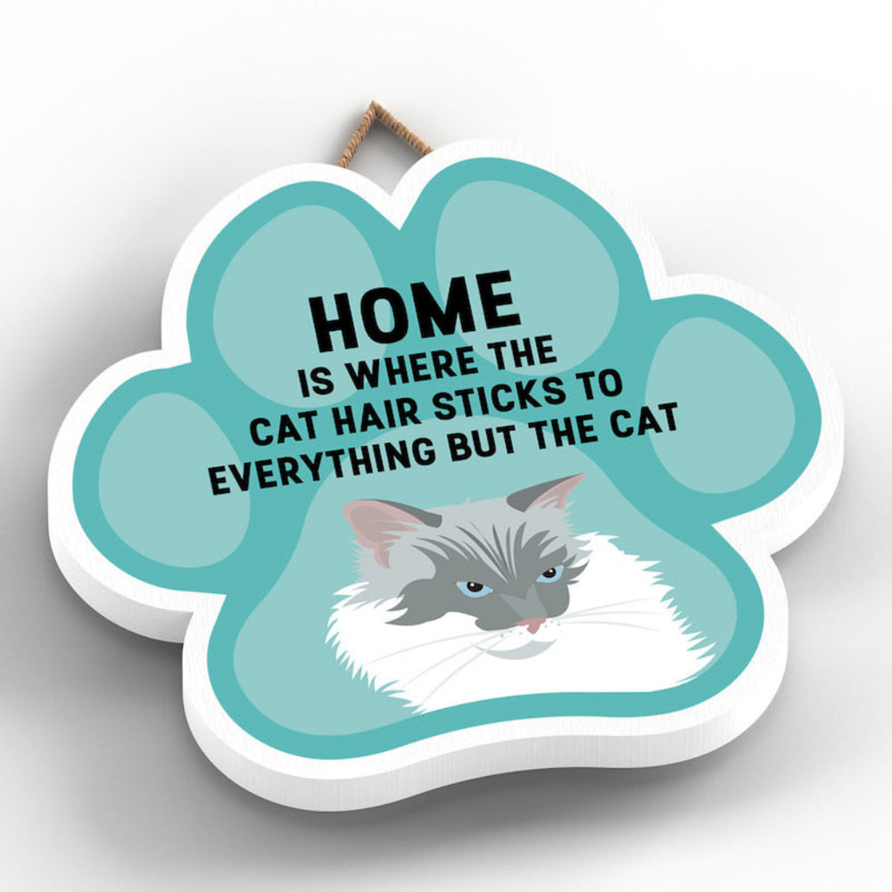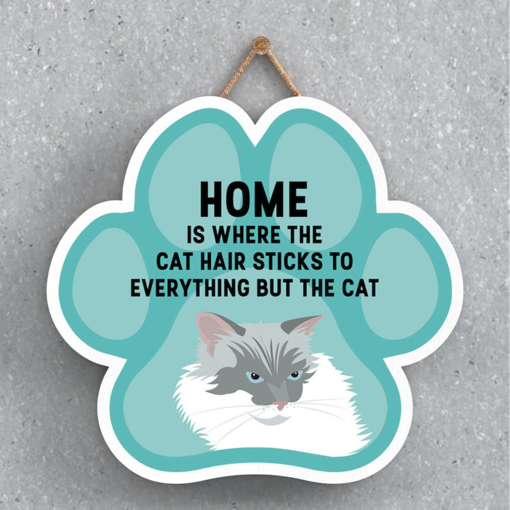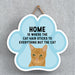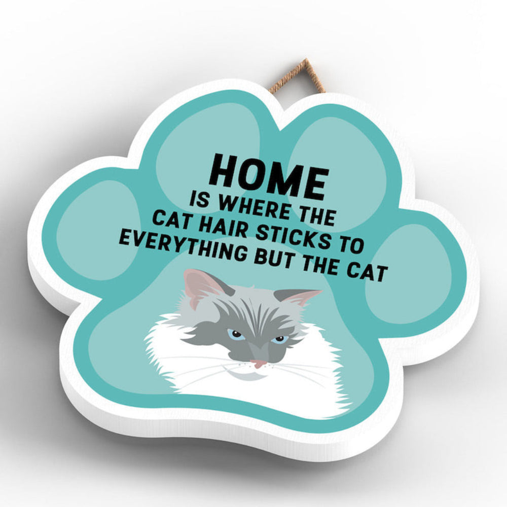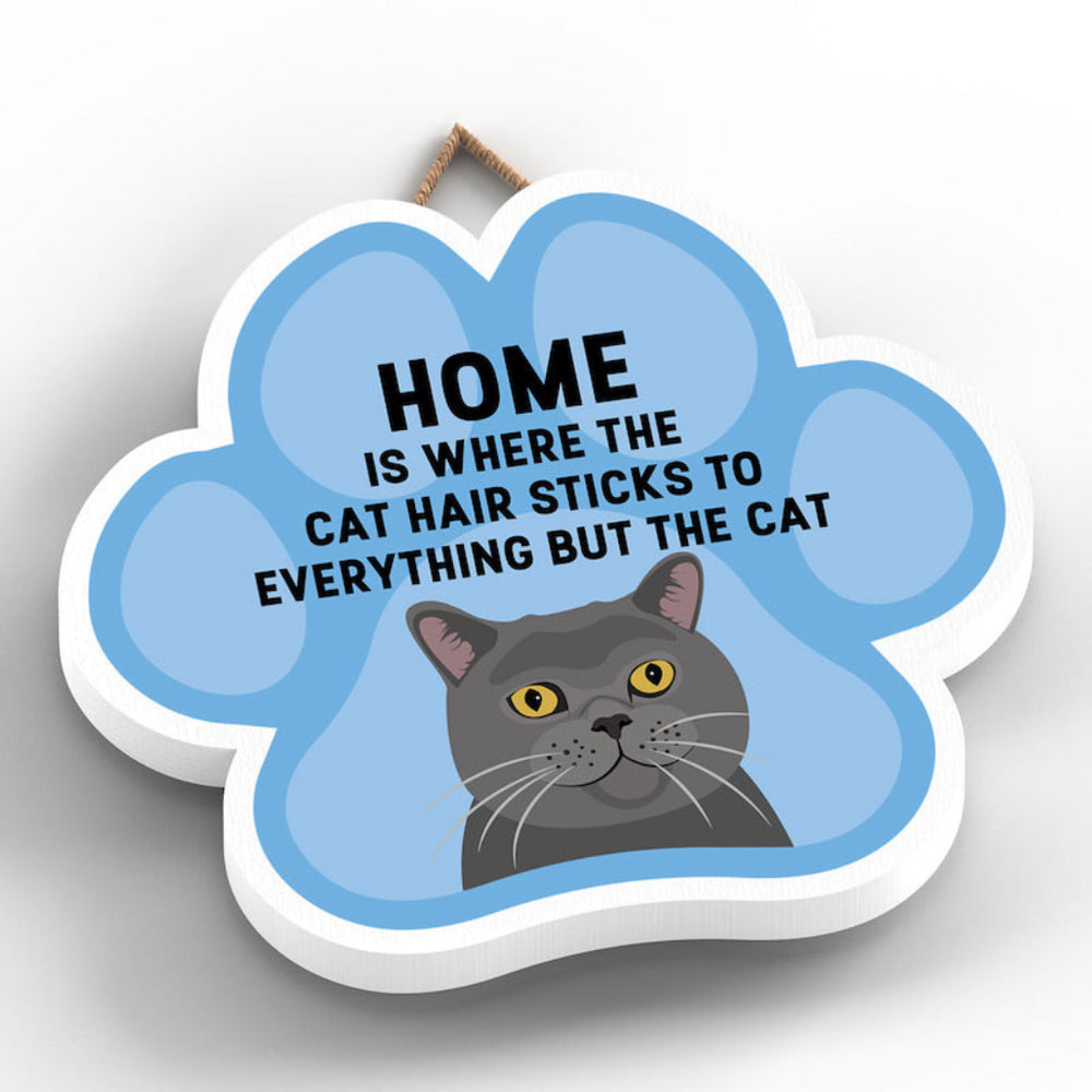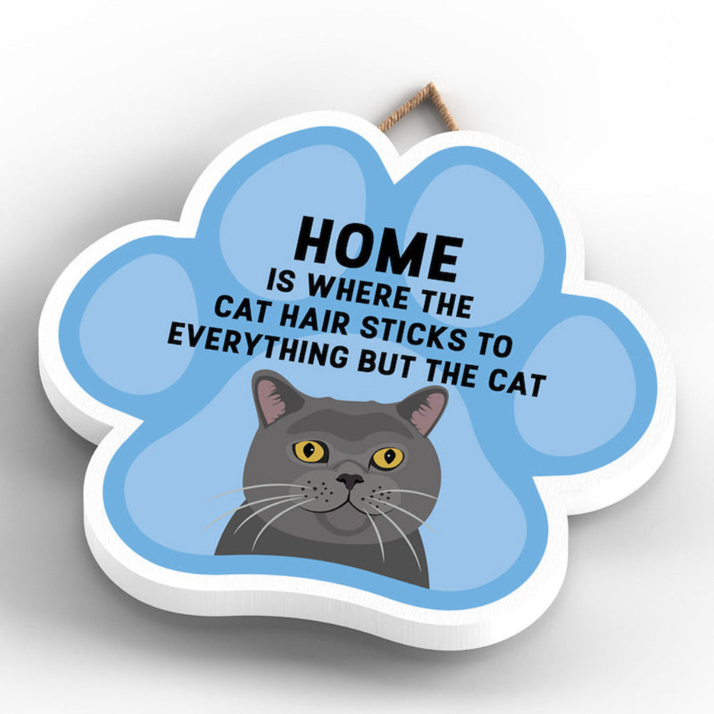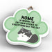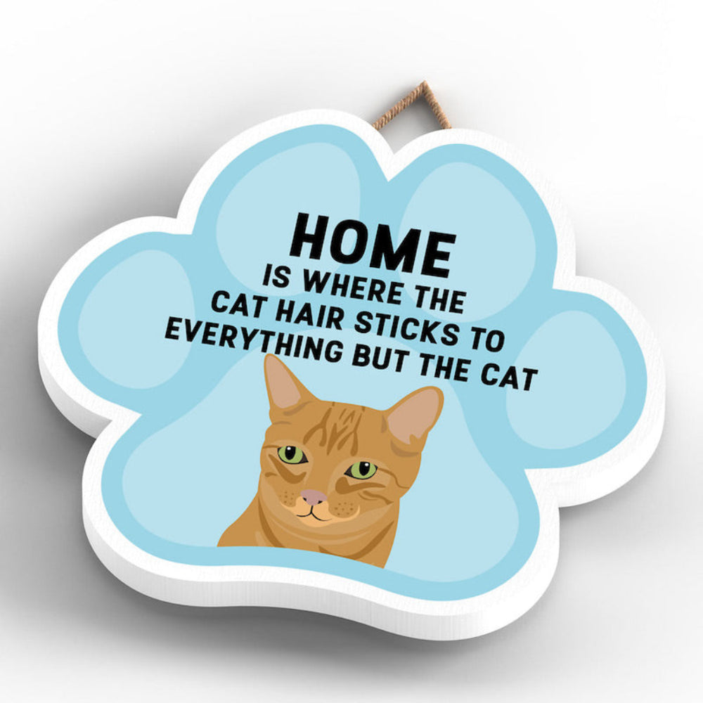 This wooden hanging sign by Vivid Squid is the purrfect decorative item for any cat lover's home. Featuring a colourful Cat Paw Shape, it has the words "HOME is Where the Cat Hair Sticks to Everything But The Cat" printed on it in a fun and humorous way. Measuring 9.2cm in height and 9.9cm in width, this sign is handmade by Katie Pearson and can be hung in any room of your house.