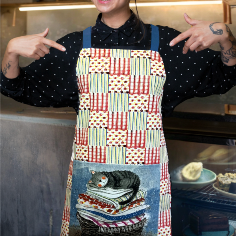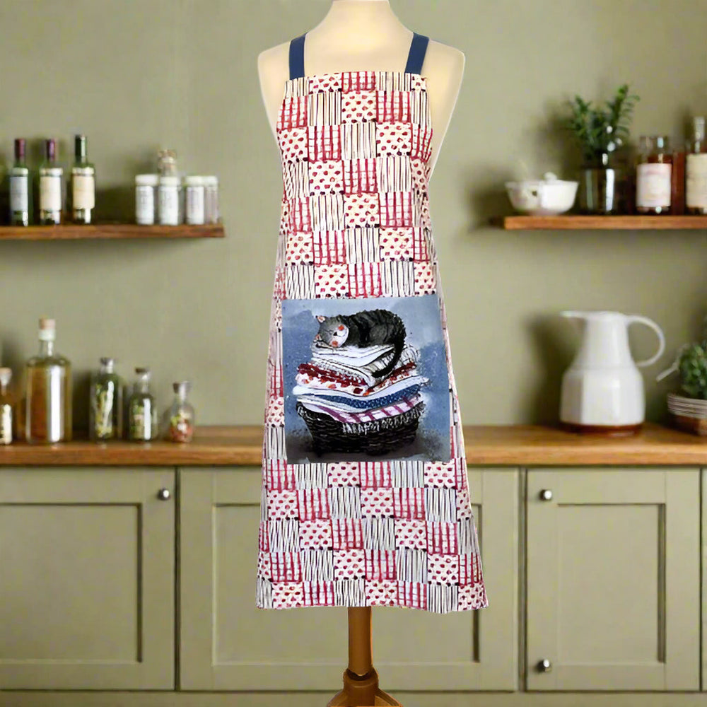 Add some feline fun to your kitchen attire with this Alex Clark women's apron. Featuring a cute cat in a laundry basket, this contemporary-style pinafore is purrfect for cat lovers of all occasions. Made from 100% cotton and machine washable, this multicoloured apron is one size fits all and is a great addition to your kitchen linen collection.