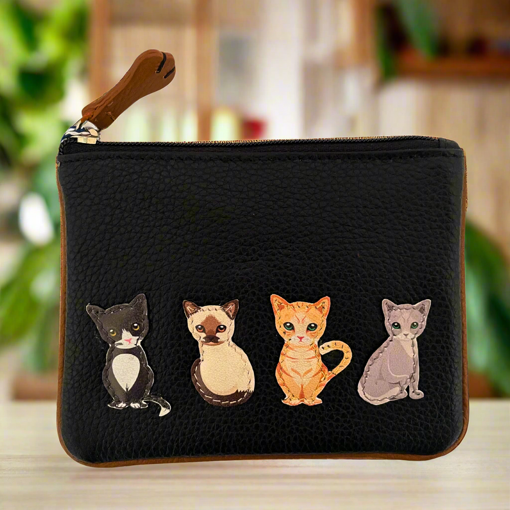 Mala Leather Best Friends Sitting Cats Coin and Card Purse Black
