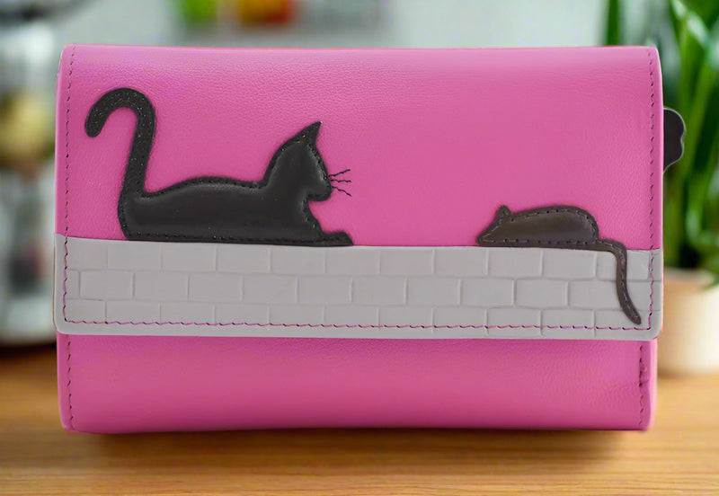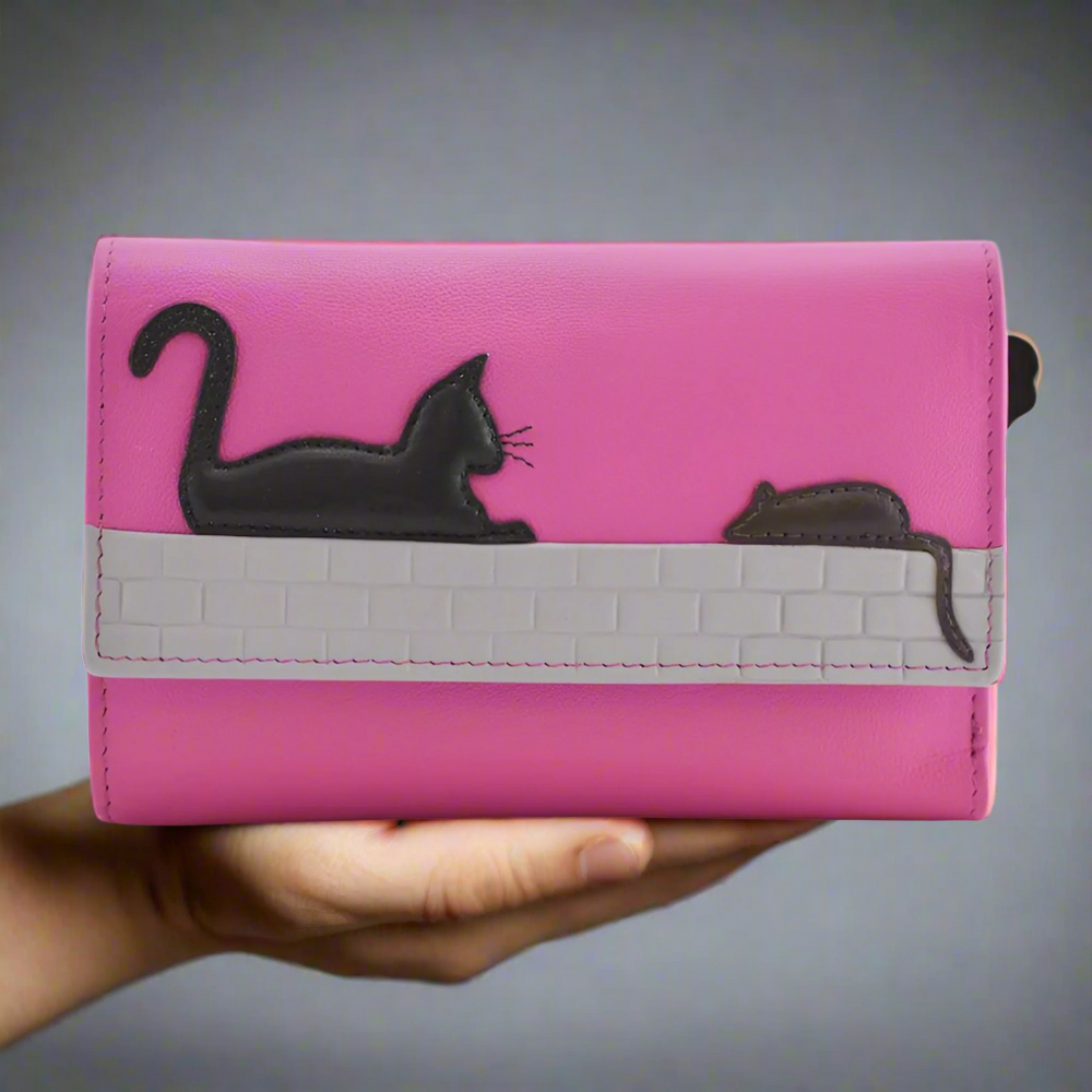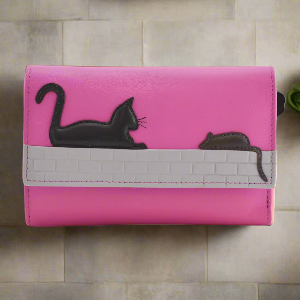 There's a useful outer change compartment with divider to separate coins and zip around zip. The front flap has a cute hand stitched cat and mouse motif which makes it an ideal cat lover's gift.
