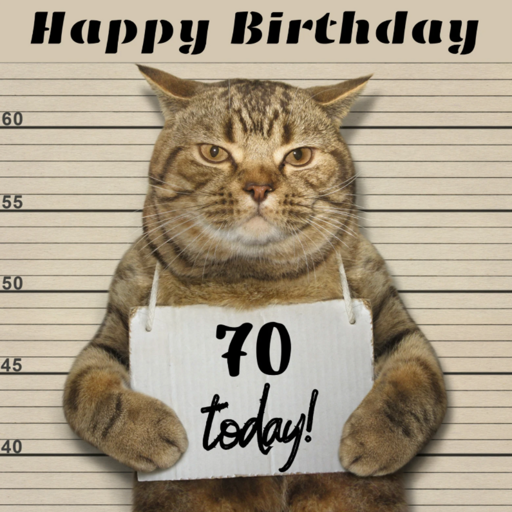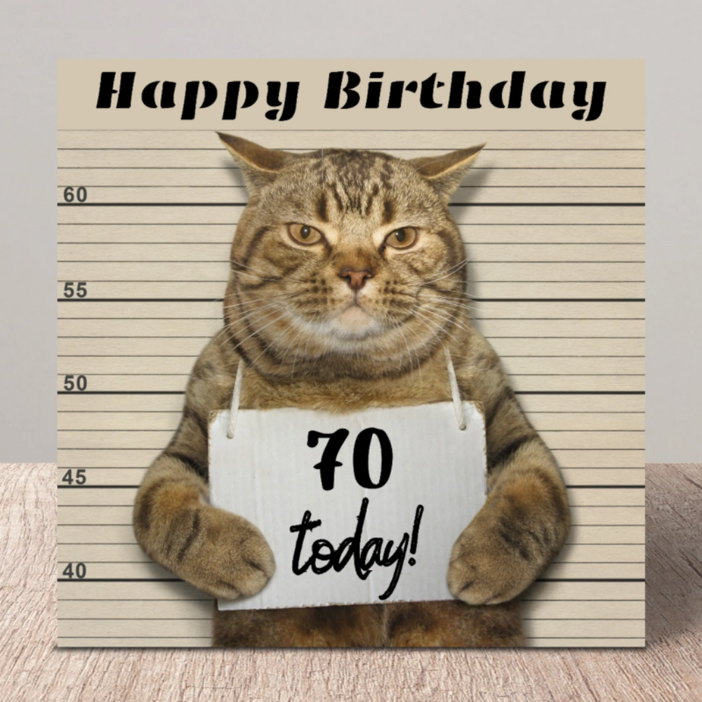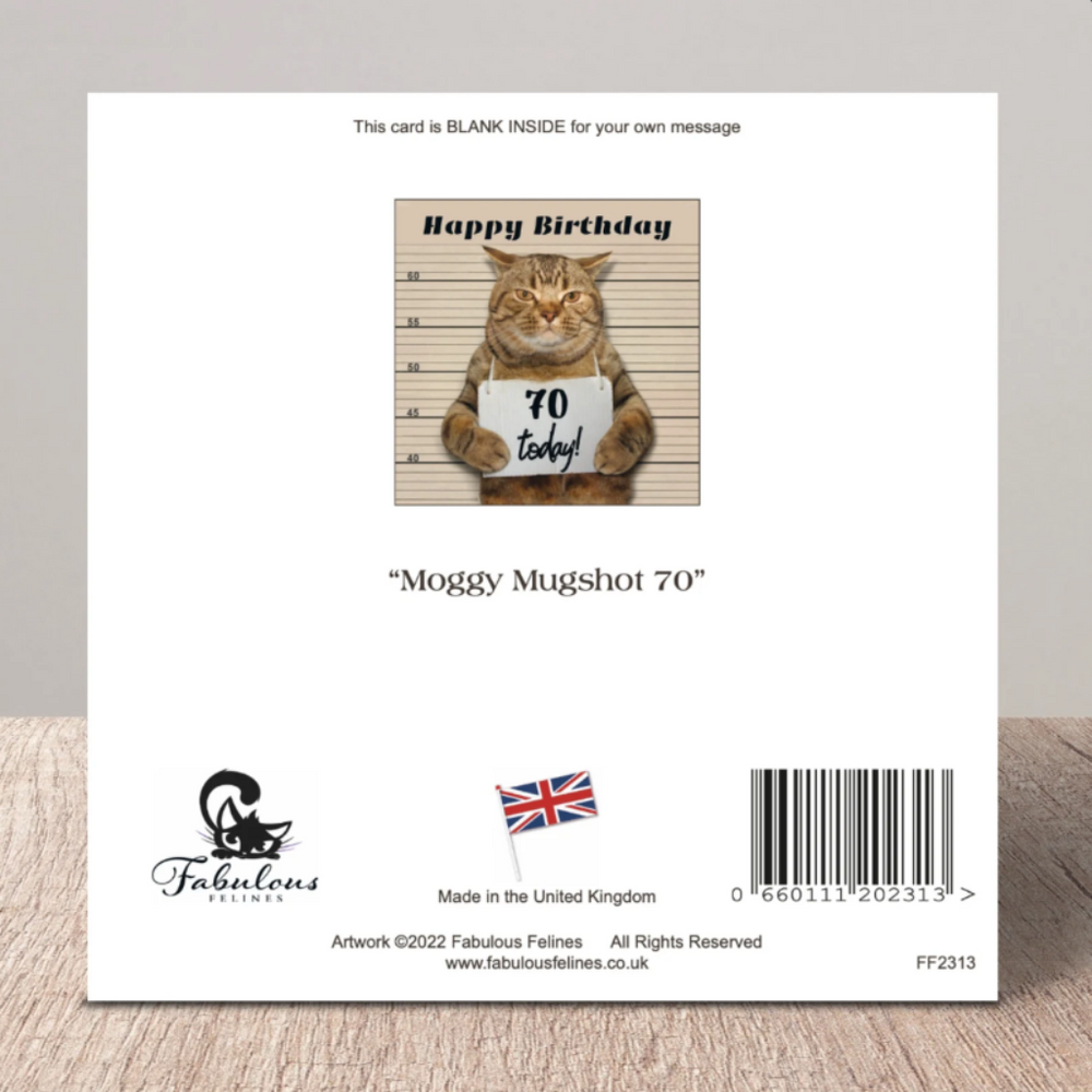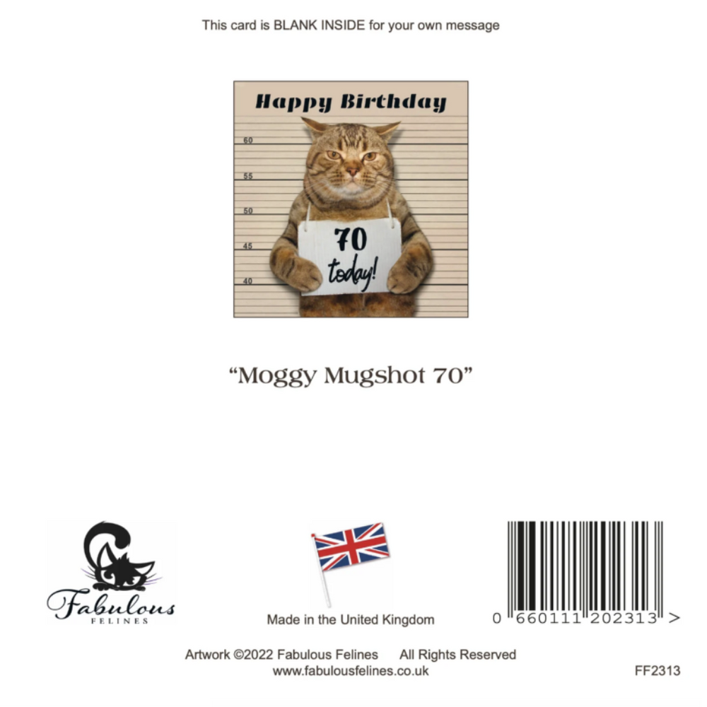 Moggie Mugshot 70th Birthday Card — Purrfect Cat Gifts Skip to content