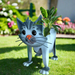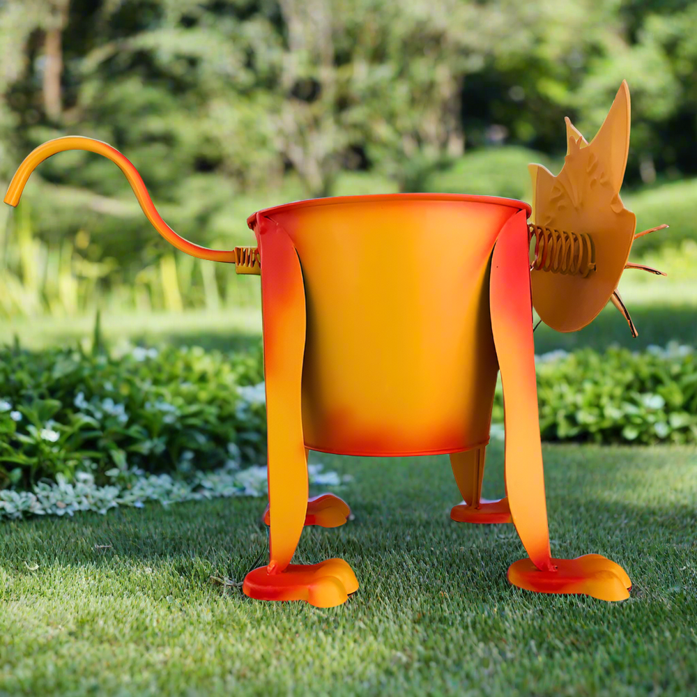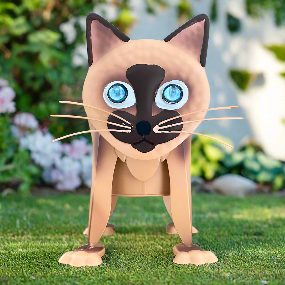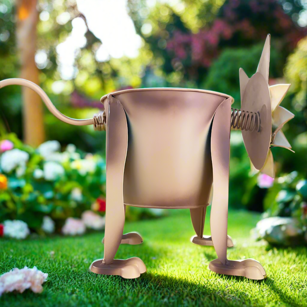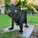 Add a touch of fun and elegance to your garden or home decor with this delightful metal cat ornament planter. The cat-shaped statue features a nodding head and tail, with glass eyes that give it a unique and charming appeal. Measuring 33cm in length, 24cm in height, and 18cm in width, this medium-sized plant holder is suitable for indoor and outdoor use, making it perfect for your porch, balcony, flower bed, or lawn.