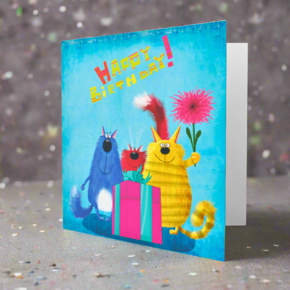 Featuring three outrageously fluffy cats, one giant gift, and a questionable flower arrangement, this 15x15 cm card is guaranteed to cause giggles. Whether you’re team Peanut, Butter, or Jelly, there’s plenty of room inside (it’s blank!) to write your own hilarious message.