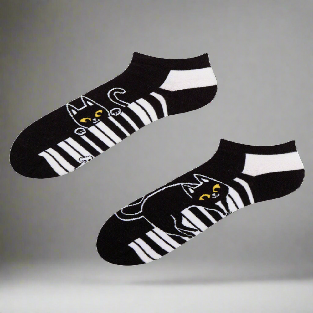 These socks are unique with their design. Instead of a matching pair, each sock in the pair is different, but complements the other to make a fun item of clothing. Wear these, and not only will they brighten up your day, they'll brighten anyone else's day who spots them.