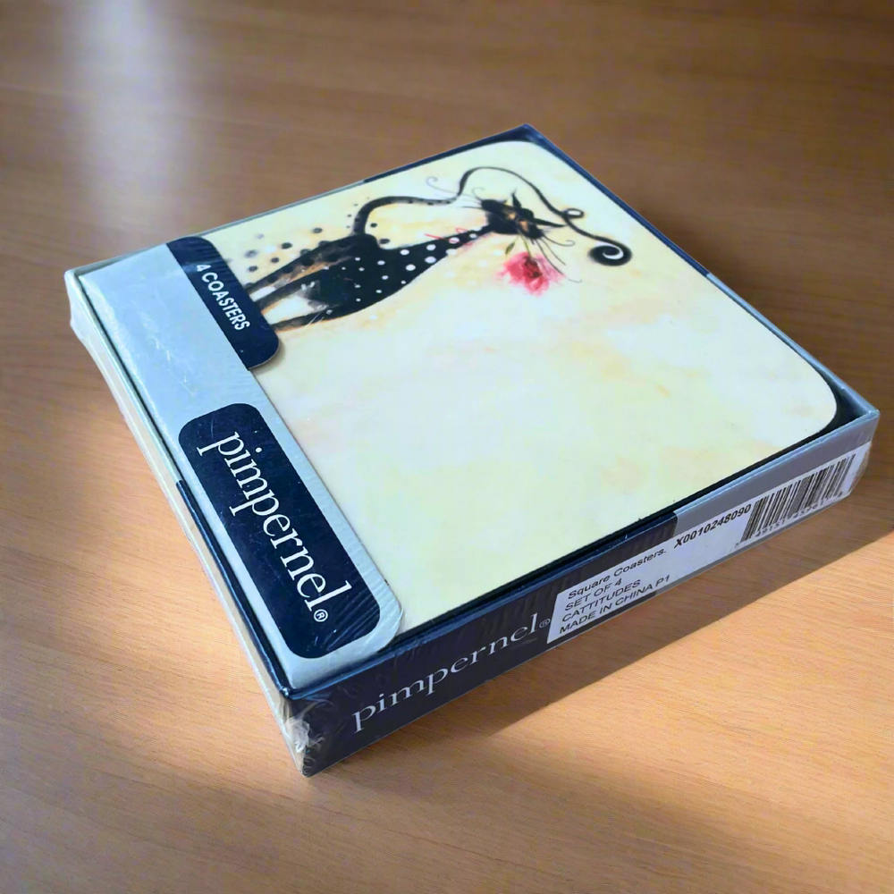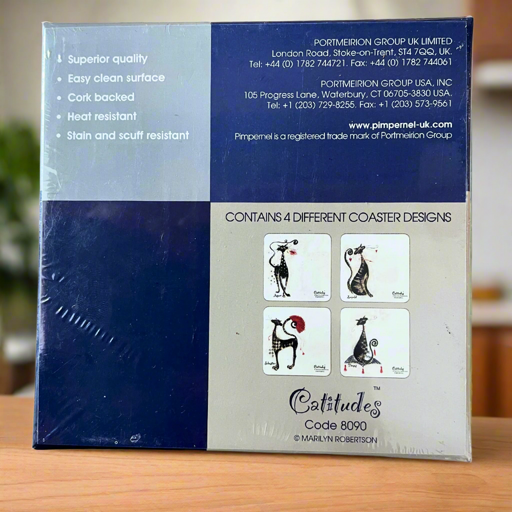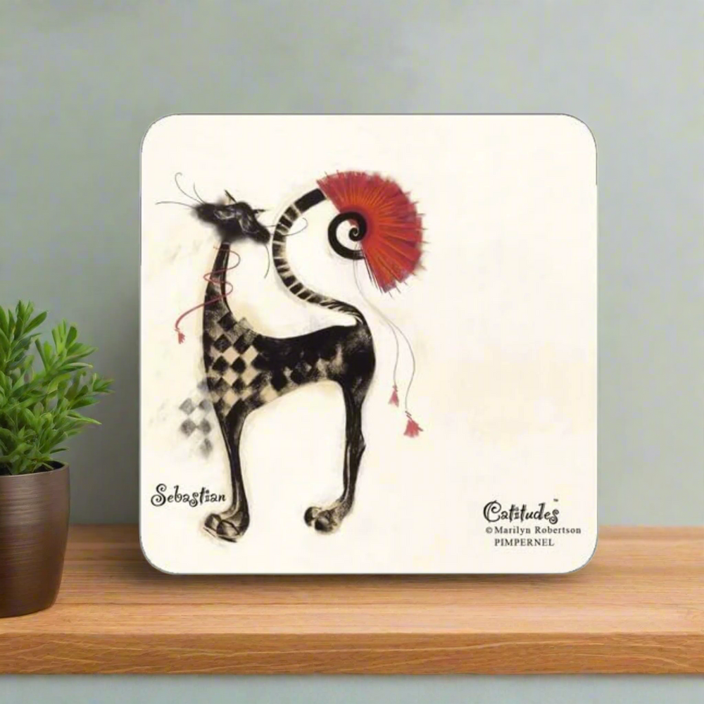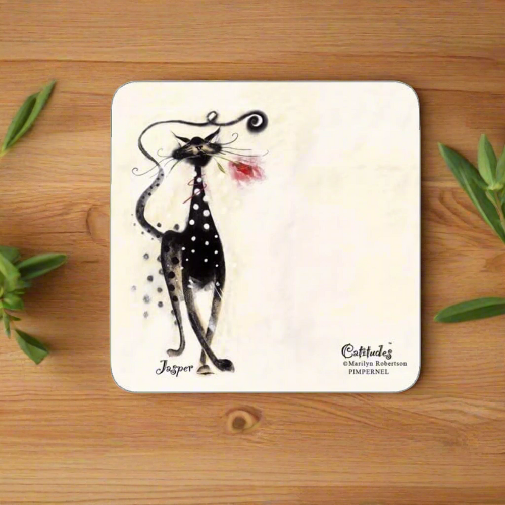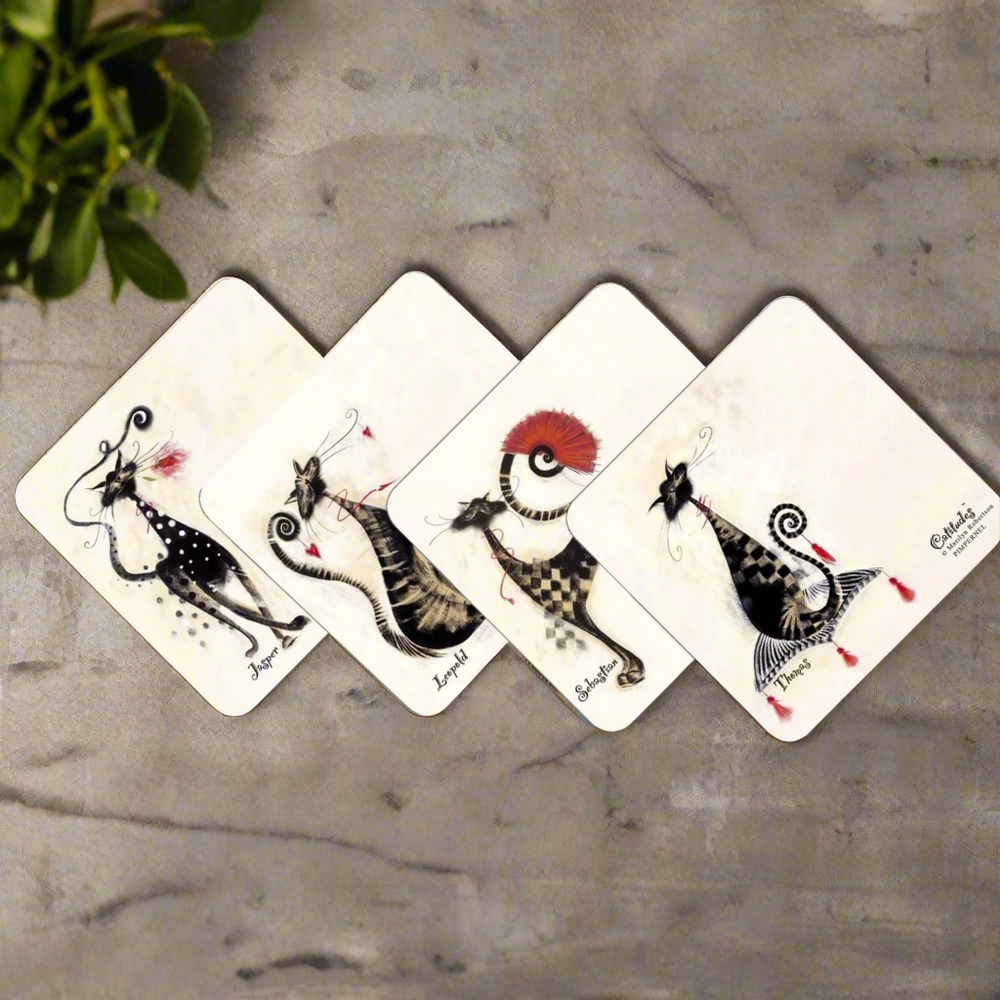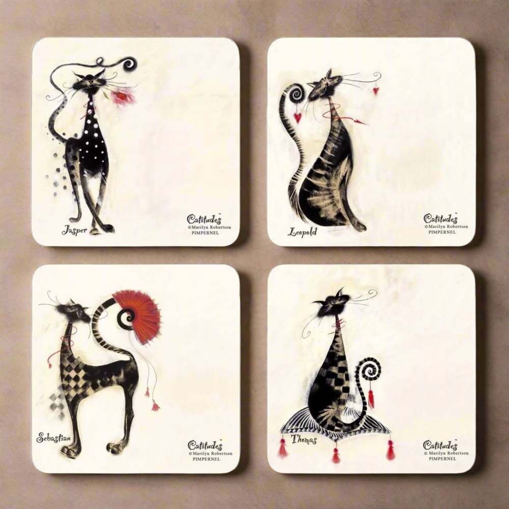 Brighten up your coffee table with this charming set of 4 coasters from the beloved Cattitudes range by artist Marilyn Robertson. Featuring the adorable feline personalities of Jasper, Thomas, Sebastian, and Leopold, each coaster brings a playful elegance to your home decor.