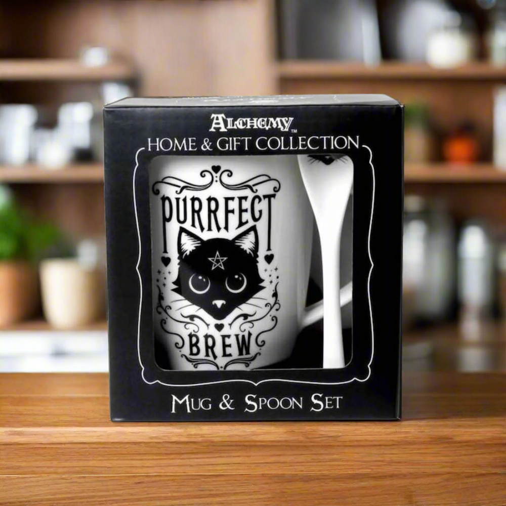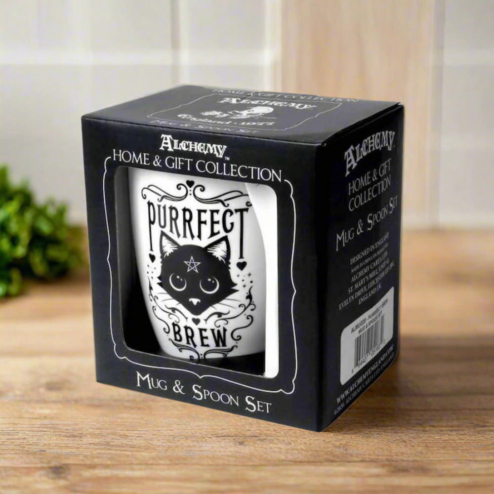 Cause a stir with this incredible mug and spoon gift set! Purrfect for that tea or coffee loving friend! Or maybe a little treat just for you, it will truly serve you a fiendishly good brew! This extraordinary mug and spoon set forms part of the exciting Home & Gift Collection by Alchemy.