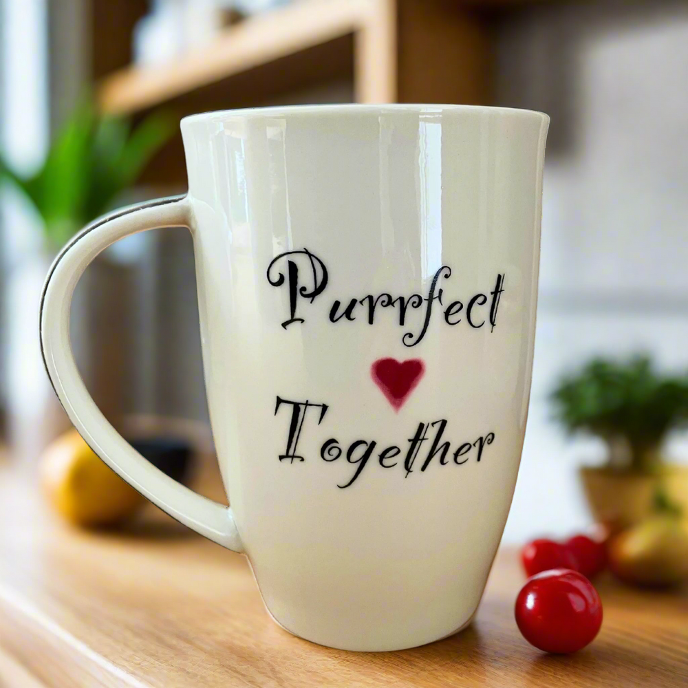 - Mug Back: "Purrfect Together" message with red heart