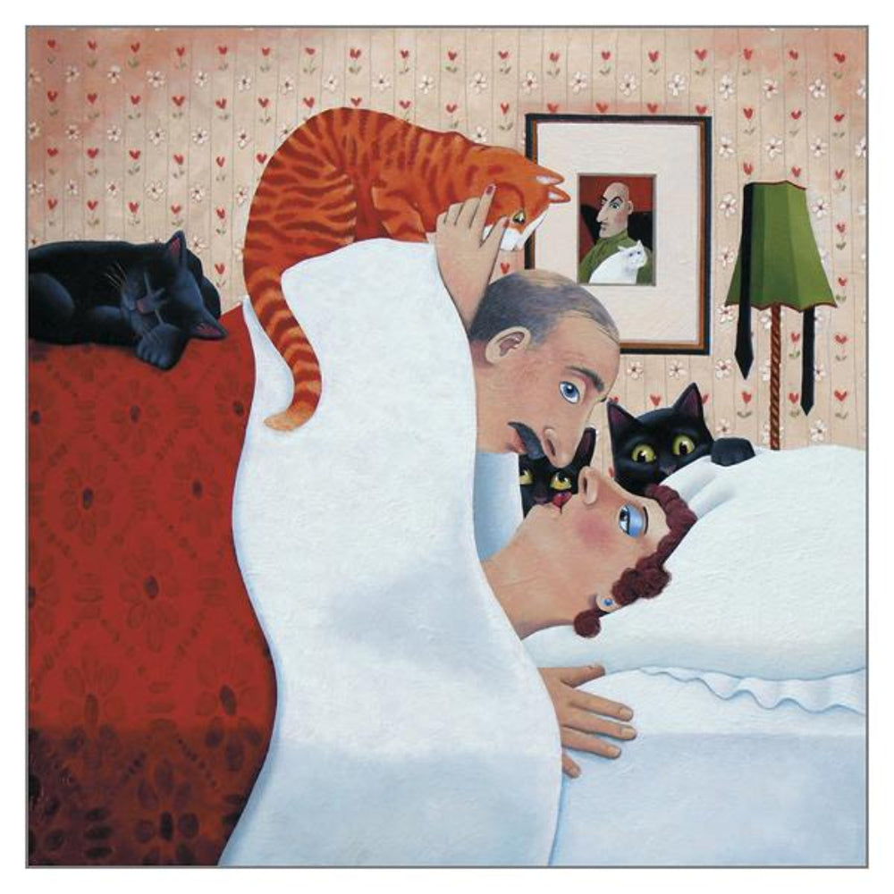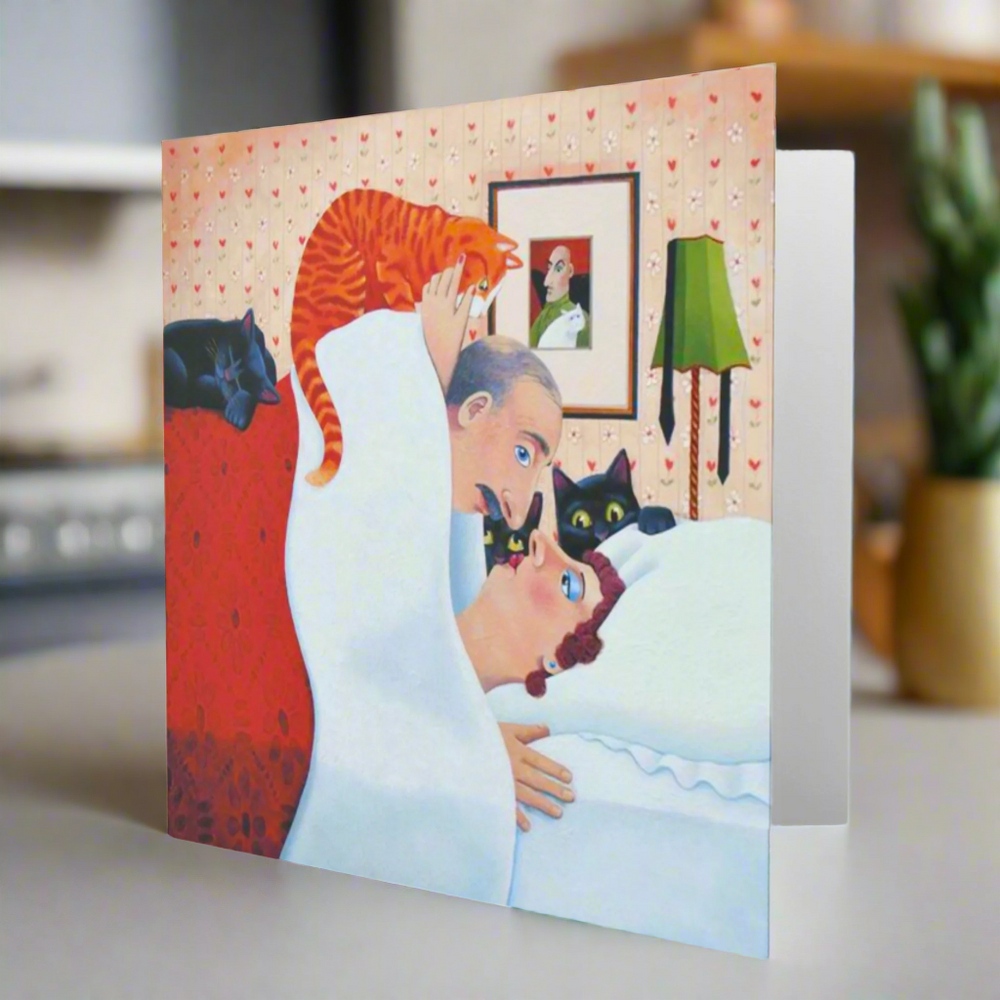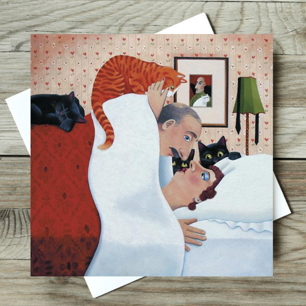 Ever tried having a private moment, only to find your cats taking over? Pussy Galore by Vicky Mount perfectly captures the humorous reality of sharing your life (and bed) with a few too many feline friends. A mix of mischief, love, and an undeniable cat invasion, this charming and witty illustration is a must-have for cat lovers!
